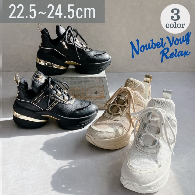 上品スニーカー サッと履ける 異素材厚底スニーカー<217-A1> Noubel Voug Relax