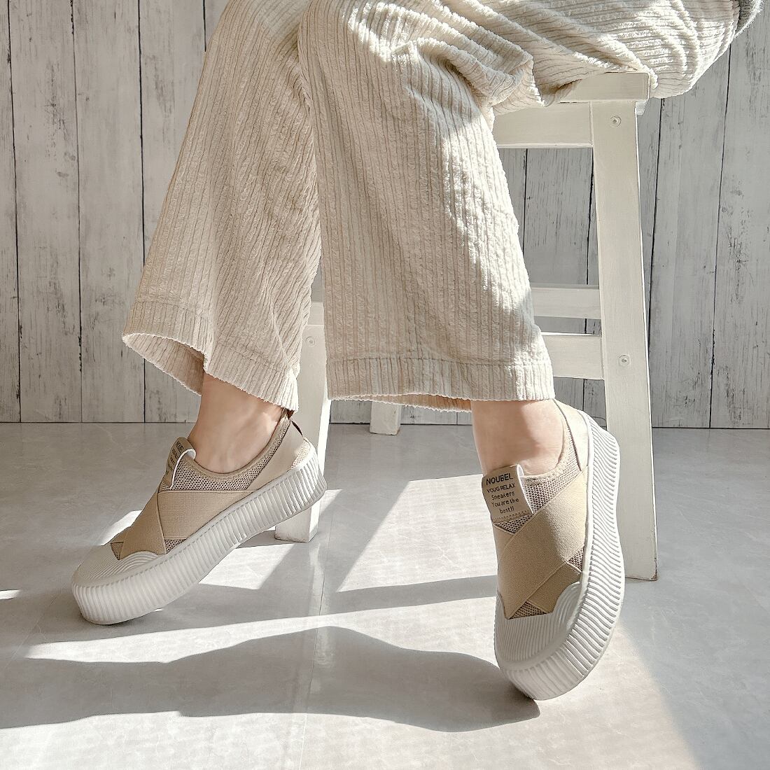 厚底クロスバンド レースレス スリッポン〈213-6054〉Noubel Voug Relax
