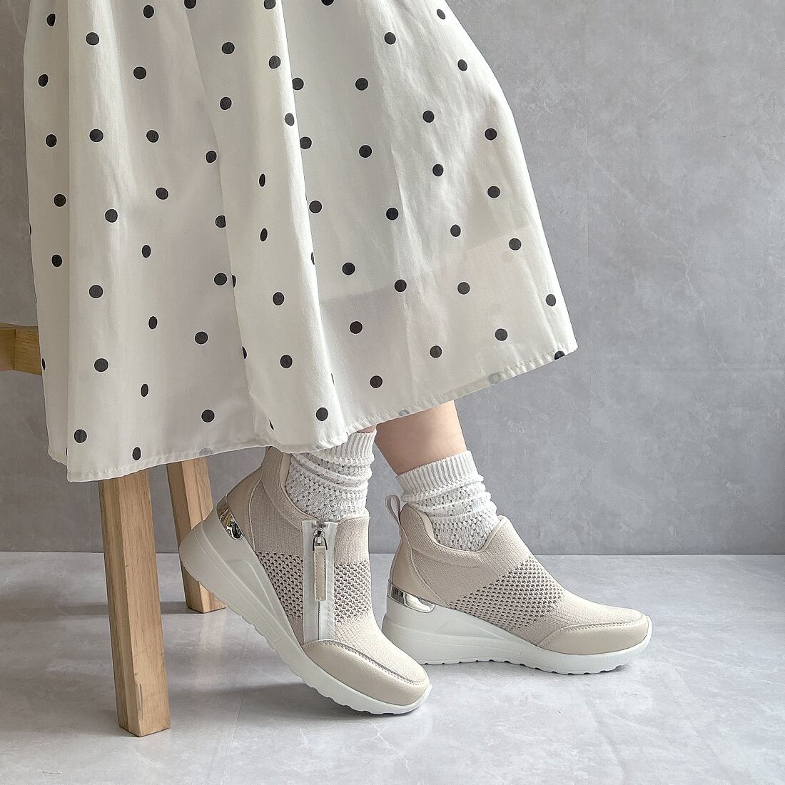 軽量 サイドジップ メッシュ 厚底 スニーカー<202-543> Noubel Voug Relax
