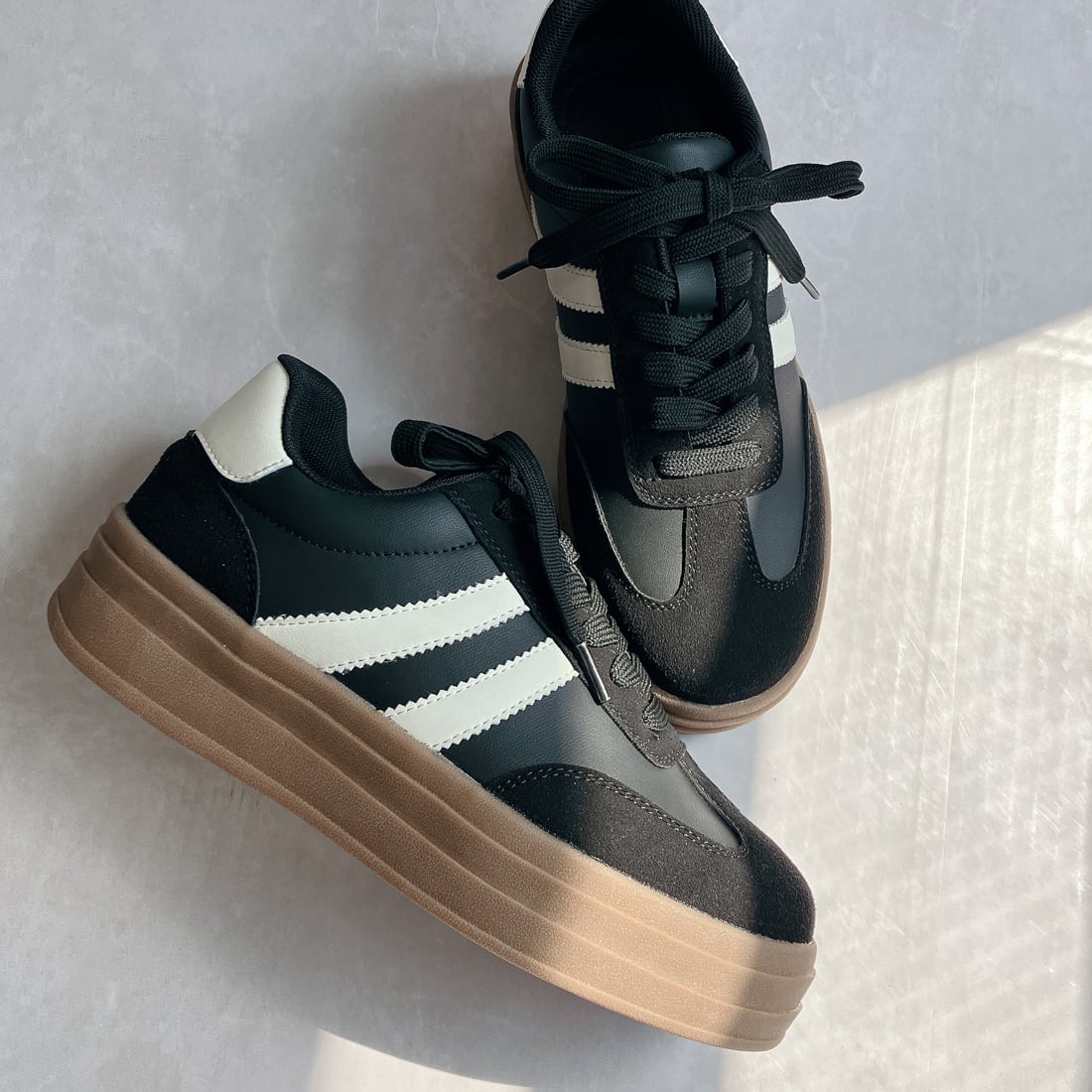 異素材コンビ ダブルライン プラットフォームスニーカー <45-3046> Noubel Voug Relax