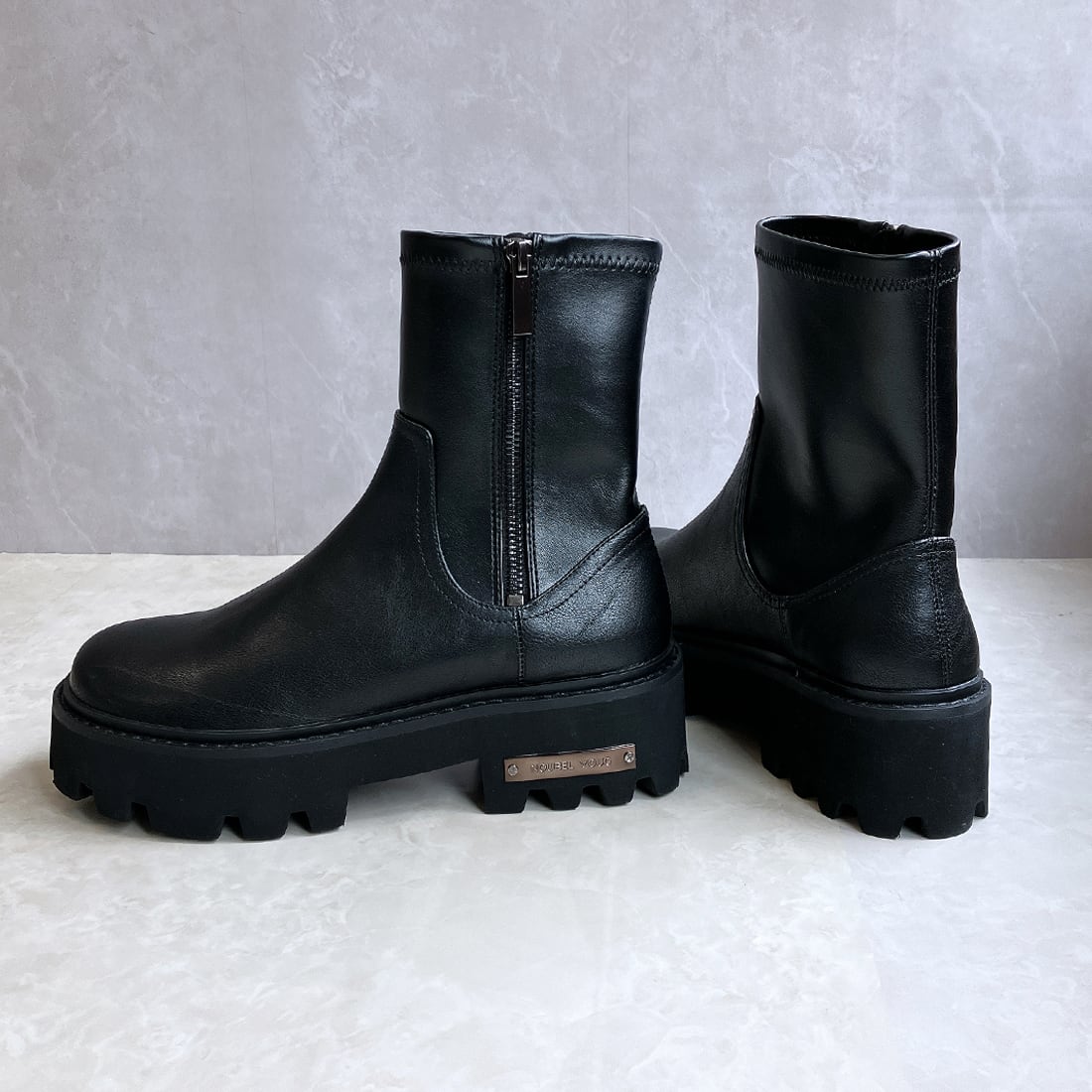定番ワードローブの一足として重宝する、シンプルで飽きのこないブーツです。