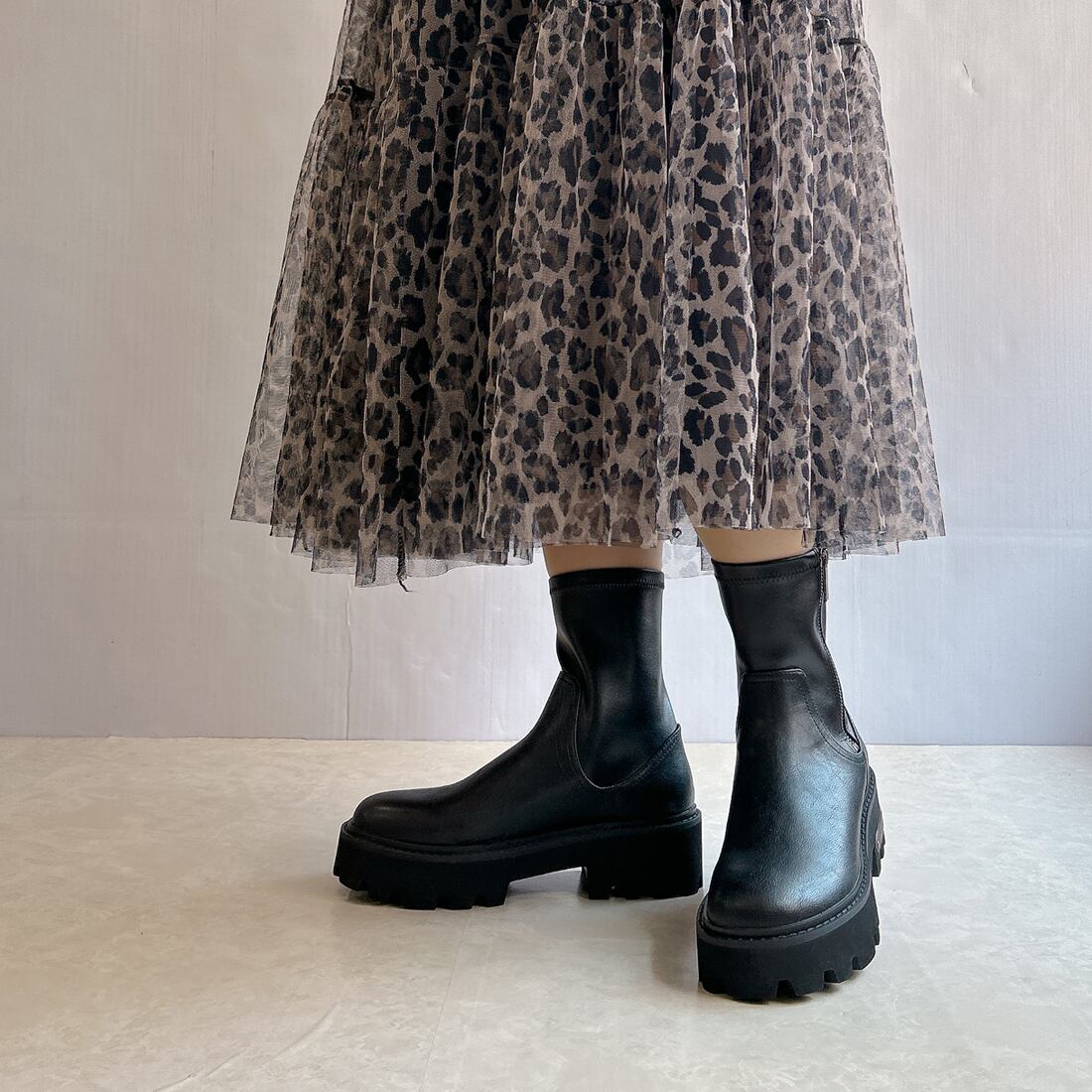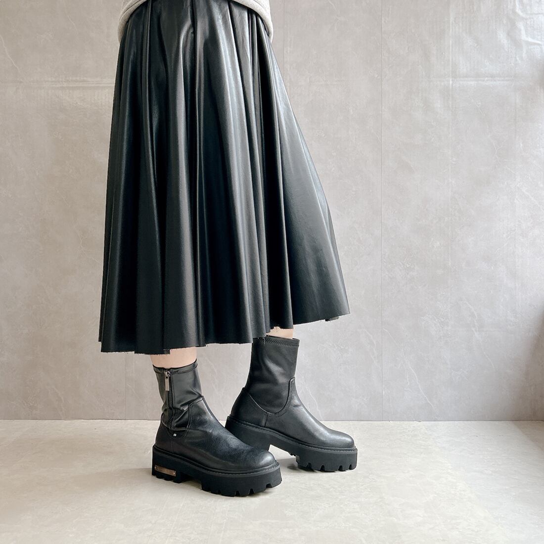 ボリュームのあるタンクソールに絶妙な丈感、そして程よくタイトなシルエットにより、大人っぽくすっきりとした印象に仕上げました。