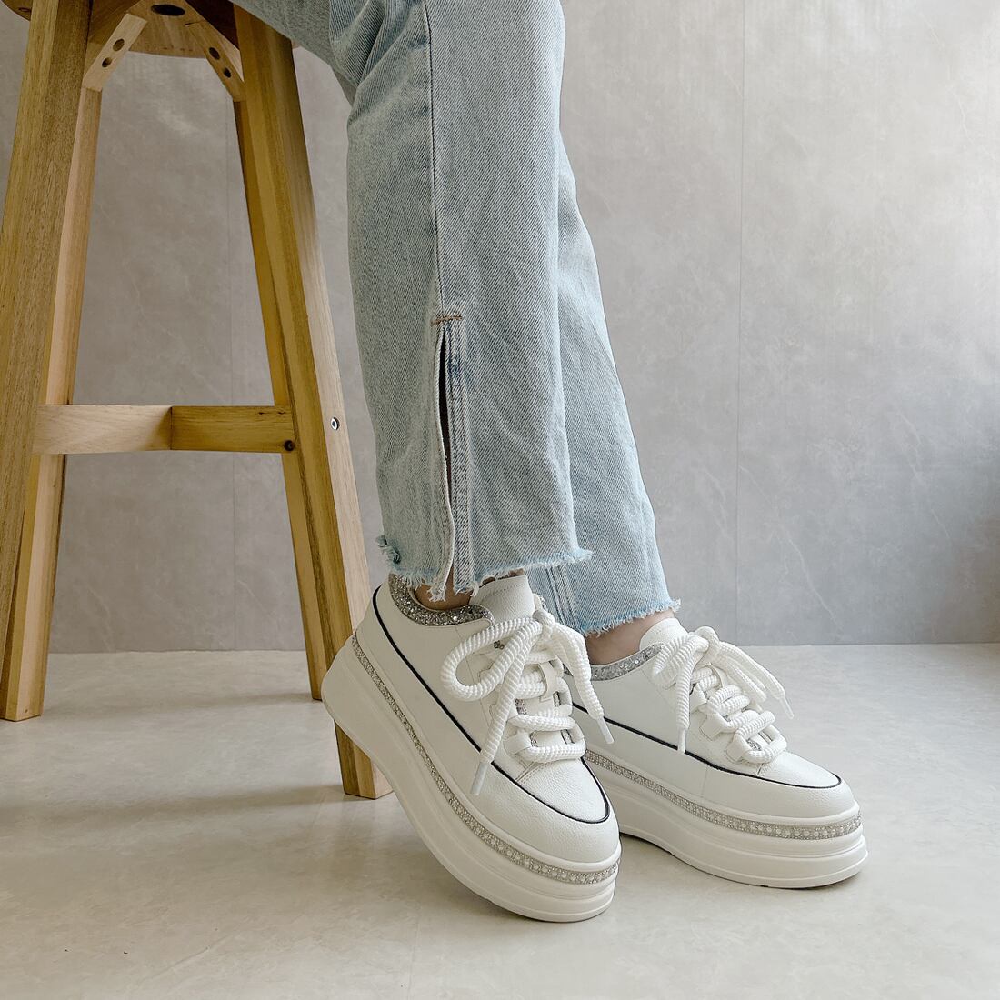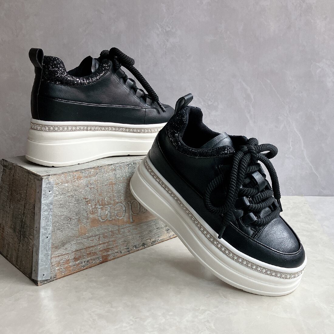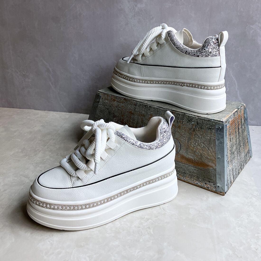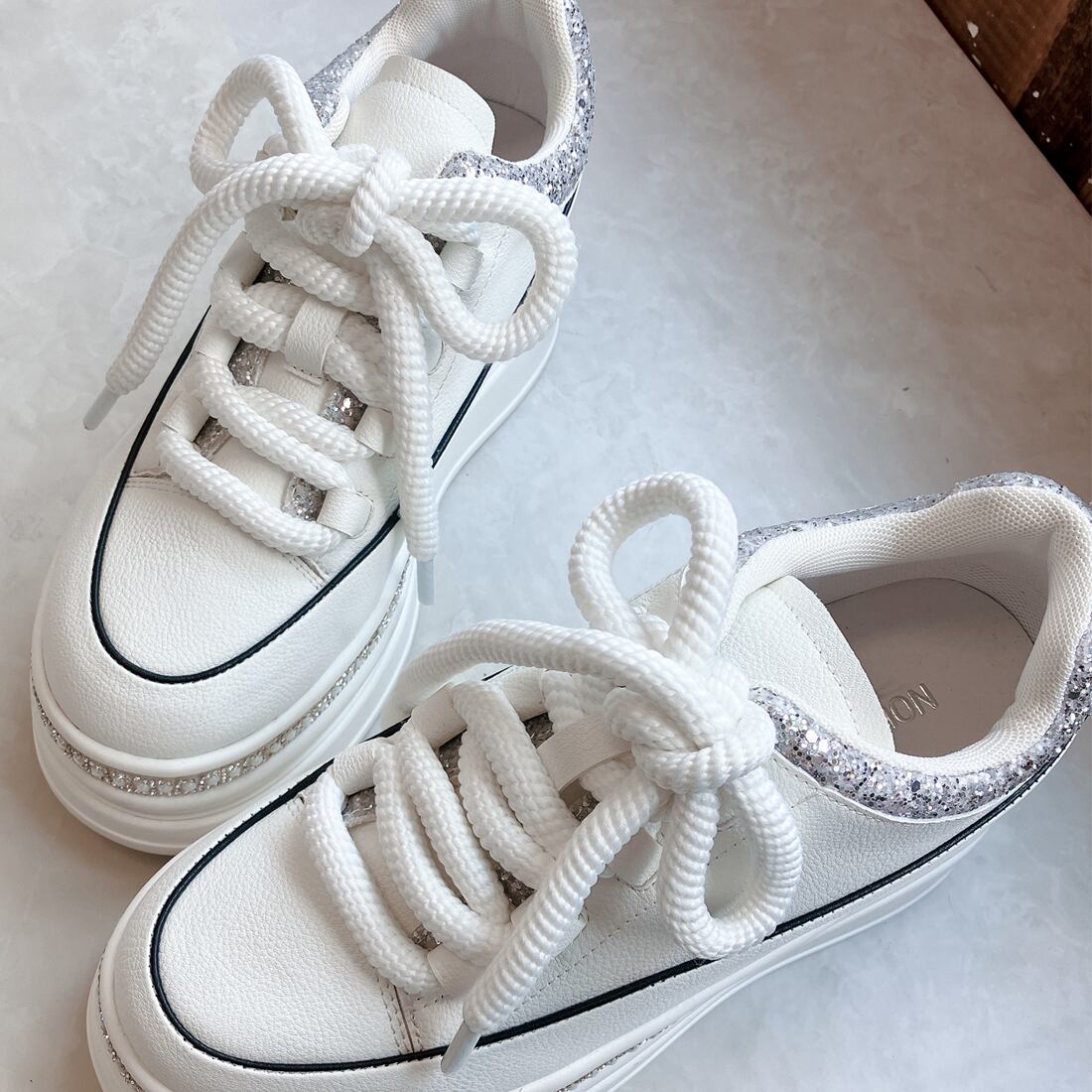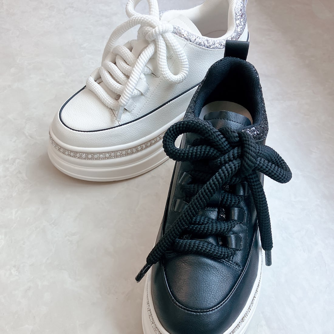 太めシューレースがなんともカワイイ厚底スニーカー。