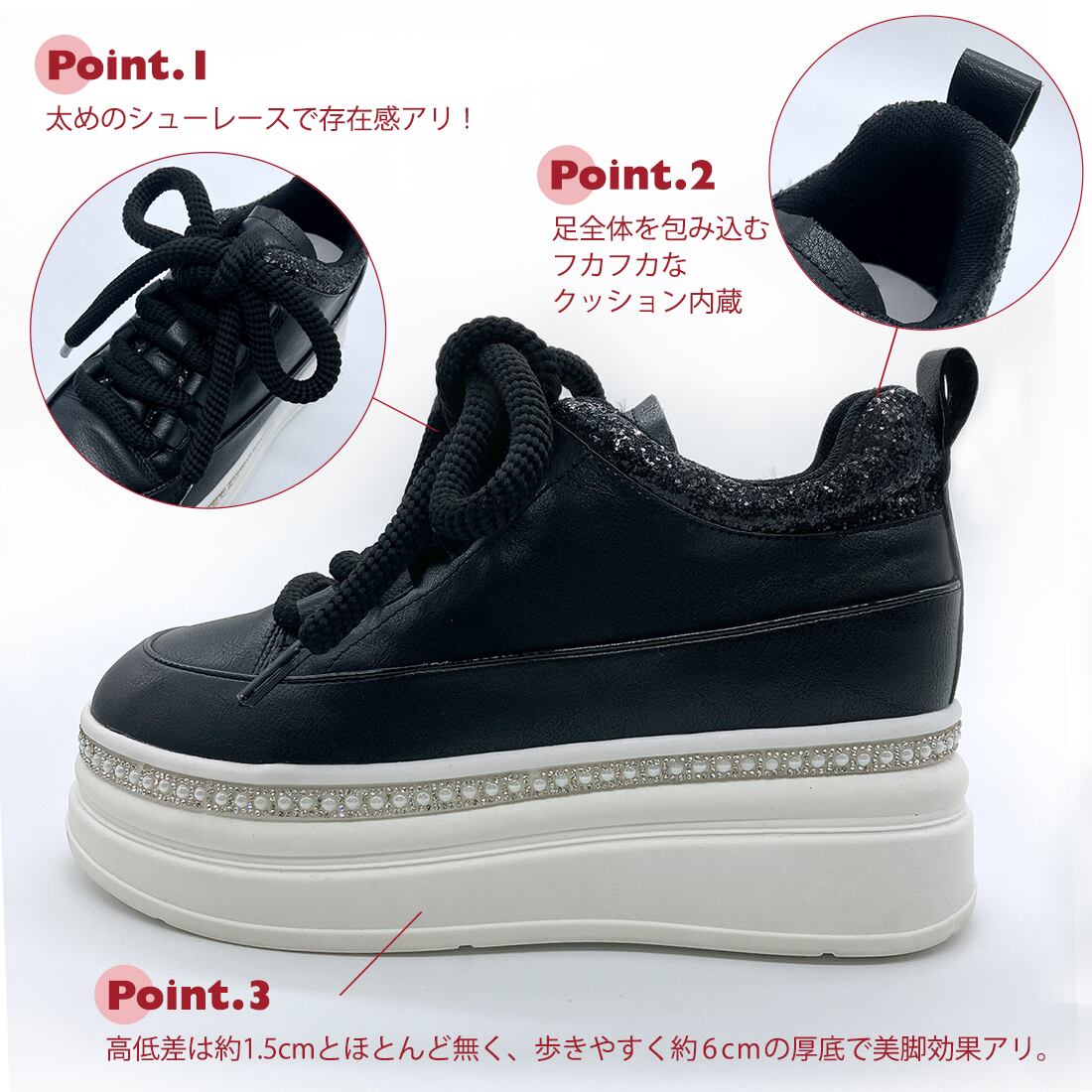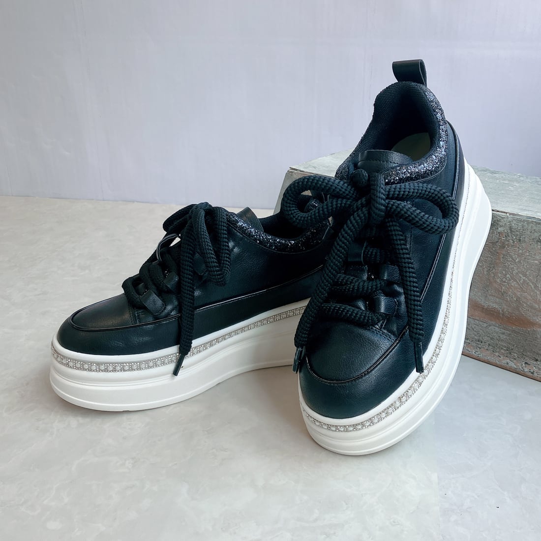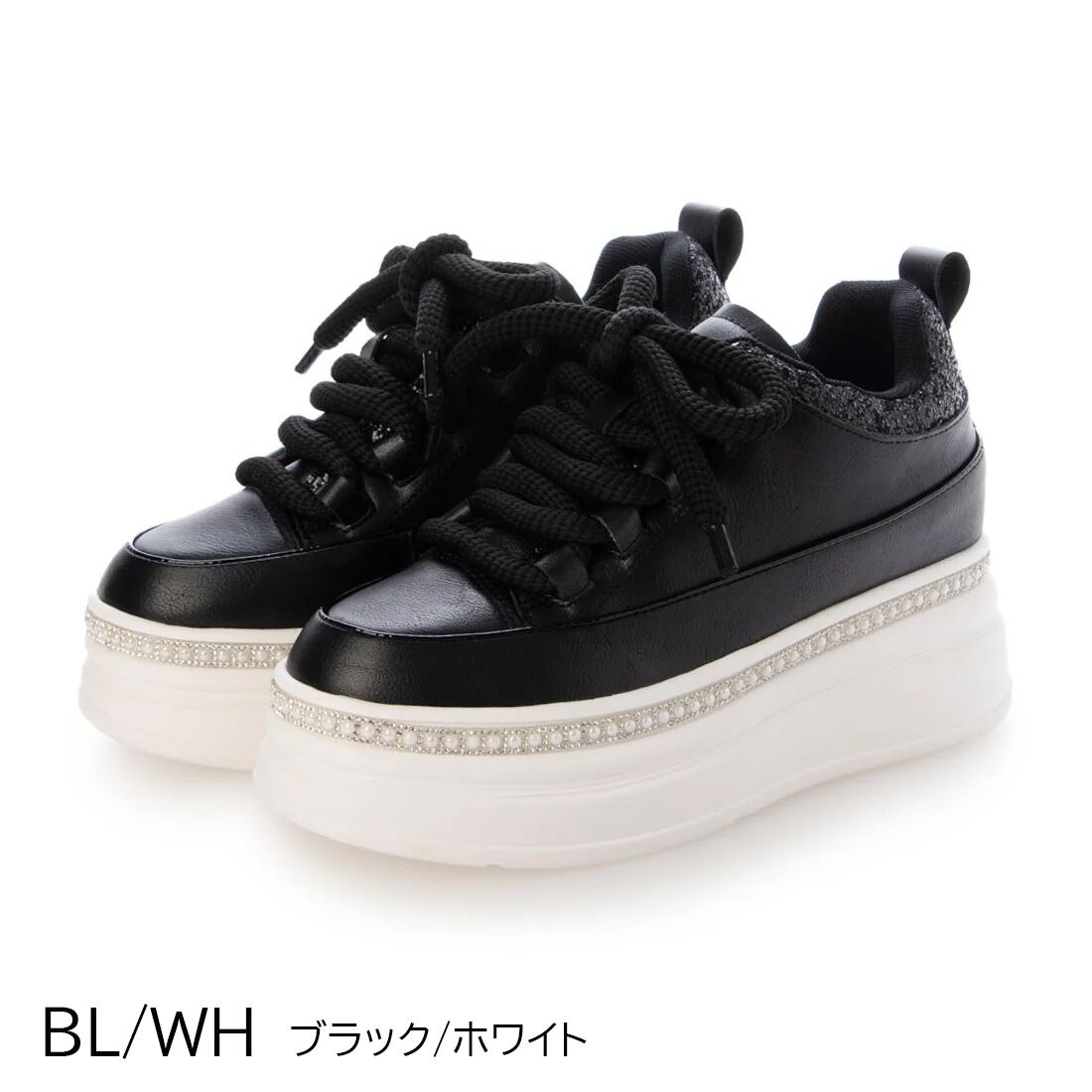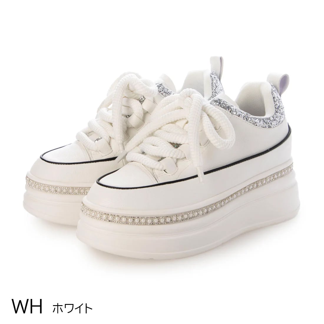 ふわモコ 極太シューレース 厚底 ラインストーンスニーカー <217-8251> Noubel Voug Relax