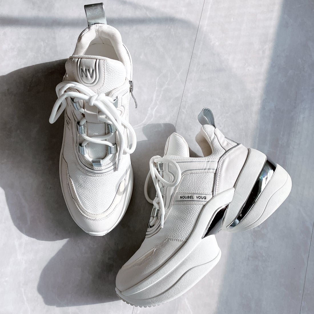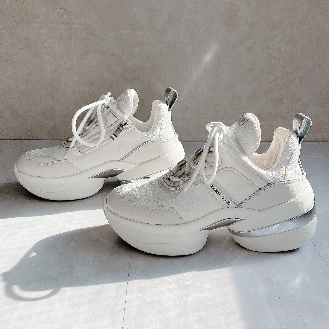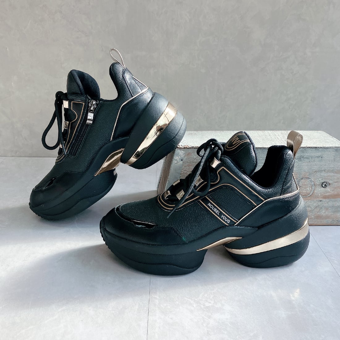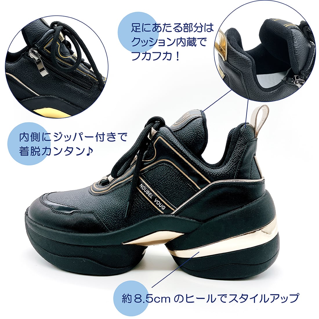 上品スニーカー サッと履ける 異素材厚底スニーカー<217-A1> Noubel Voug Relax