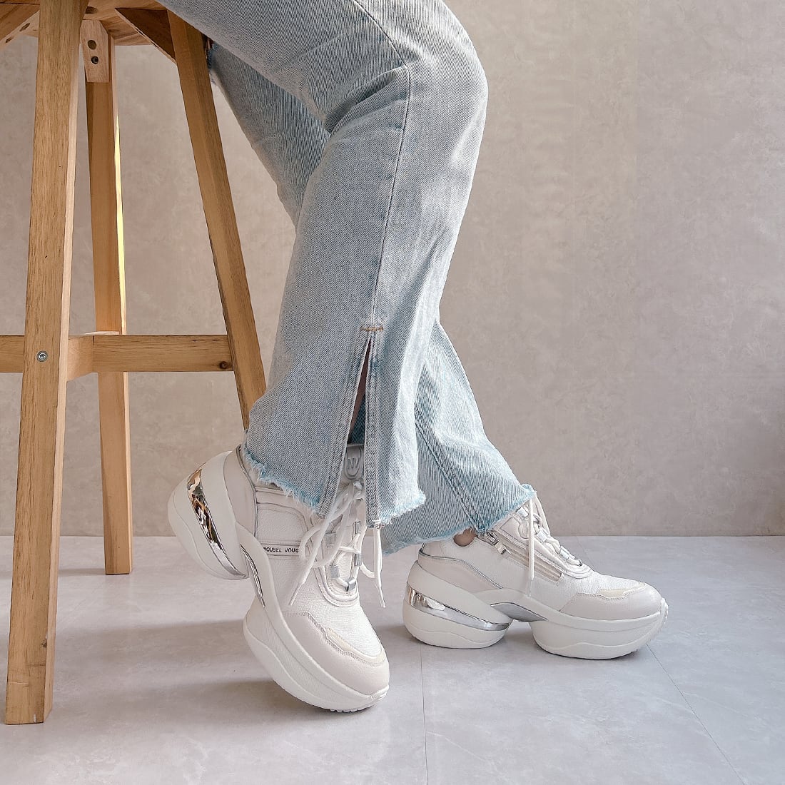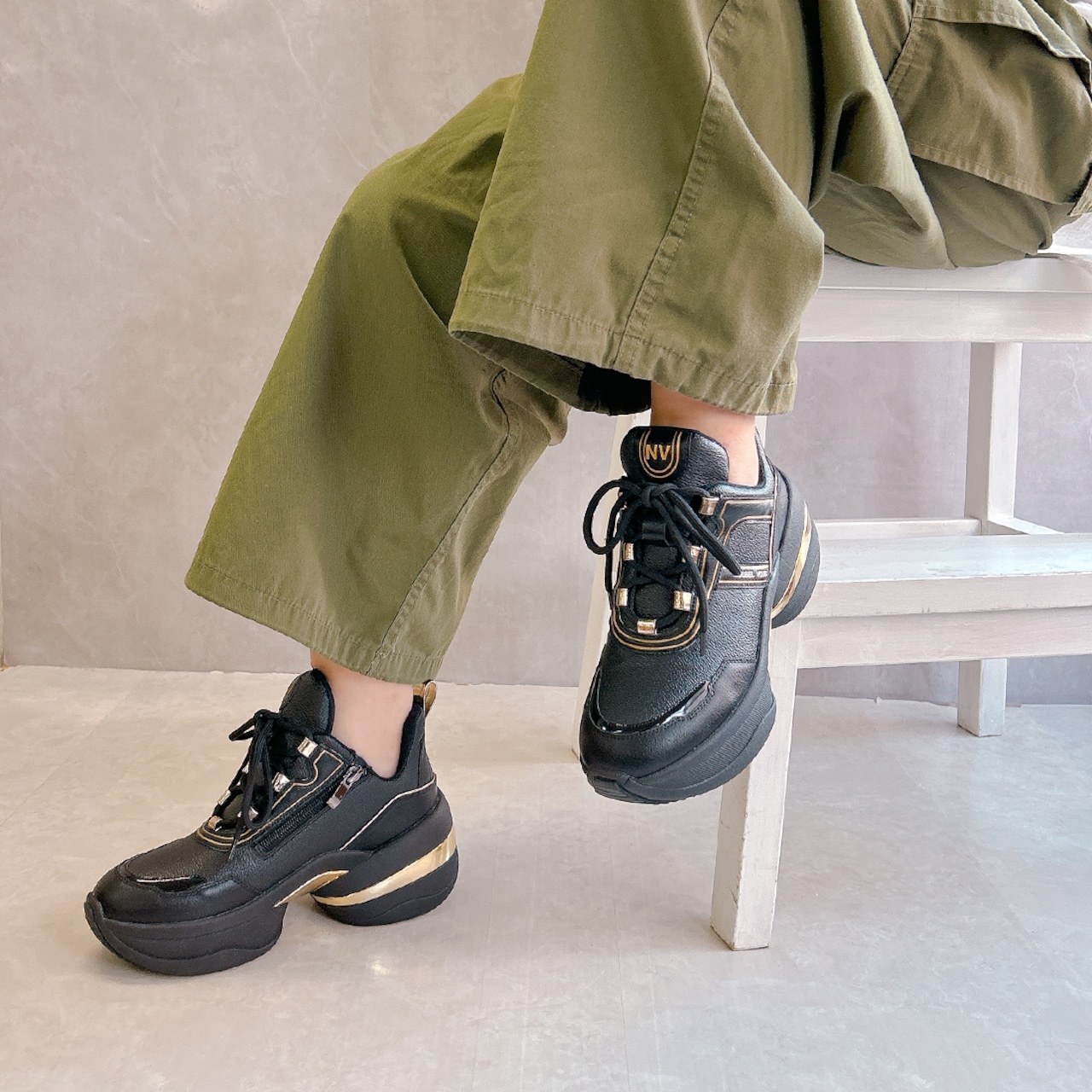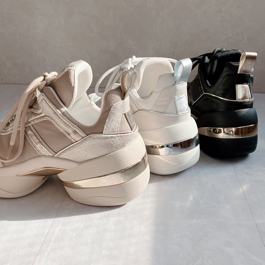 存在感のあるボリュームソールに、洗練されたディテールを掛け合わせた大人のためのデザインスニーカー。