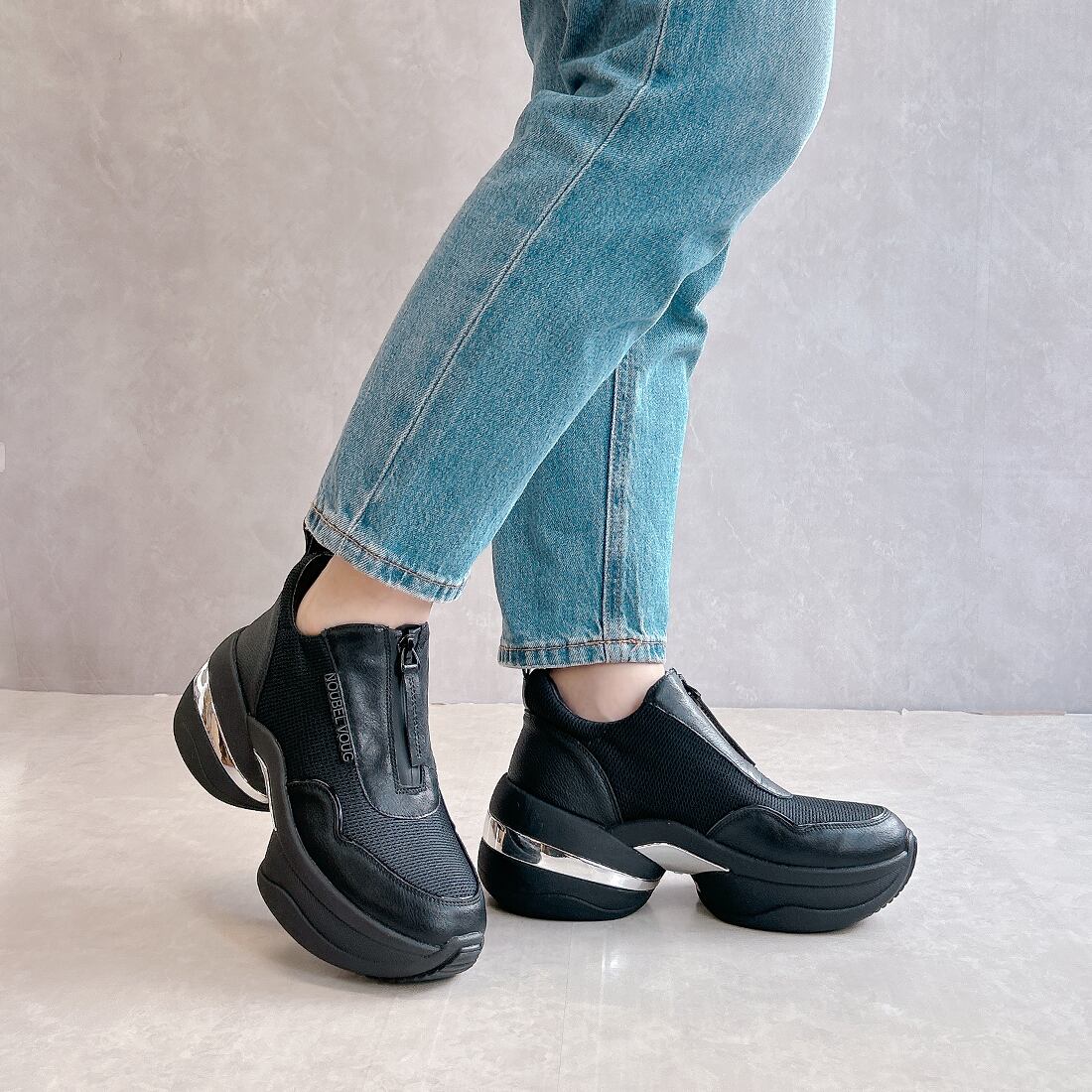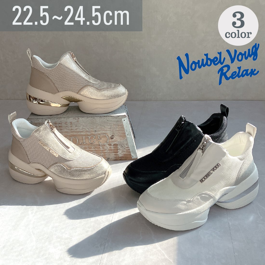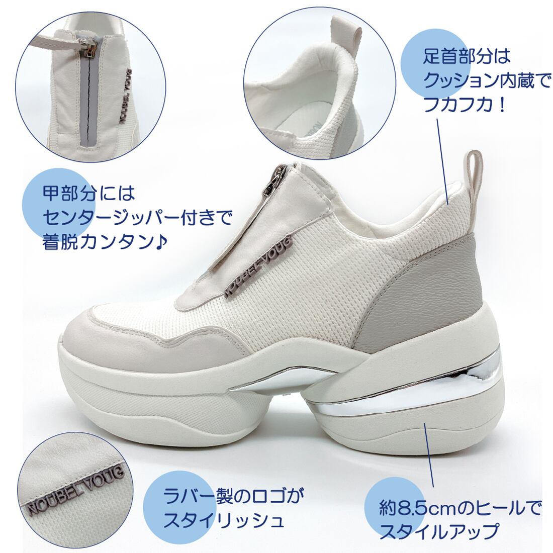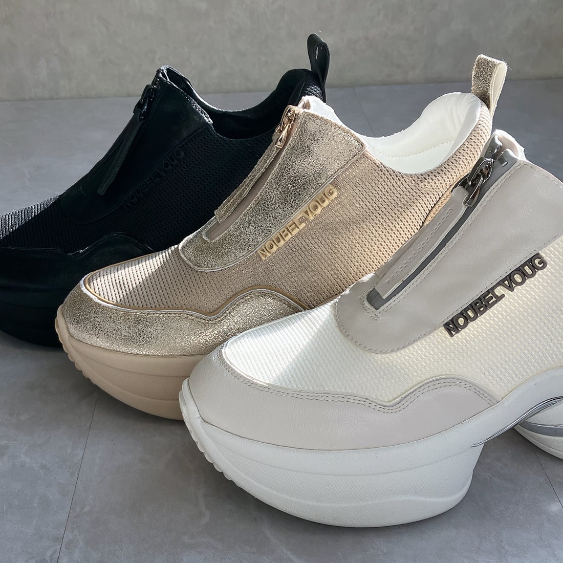 上品スニーカー サッと履ける フロントジッパー厚底スニーカー<217-A3> Noubel Voug Relax