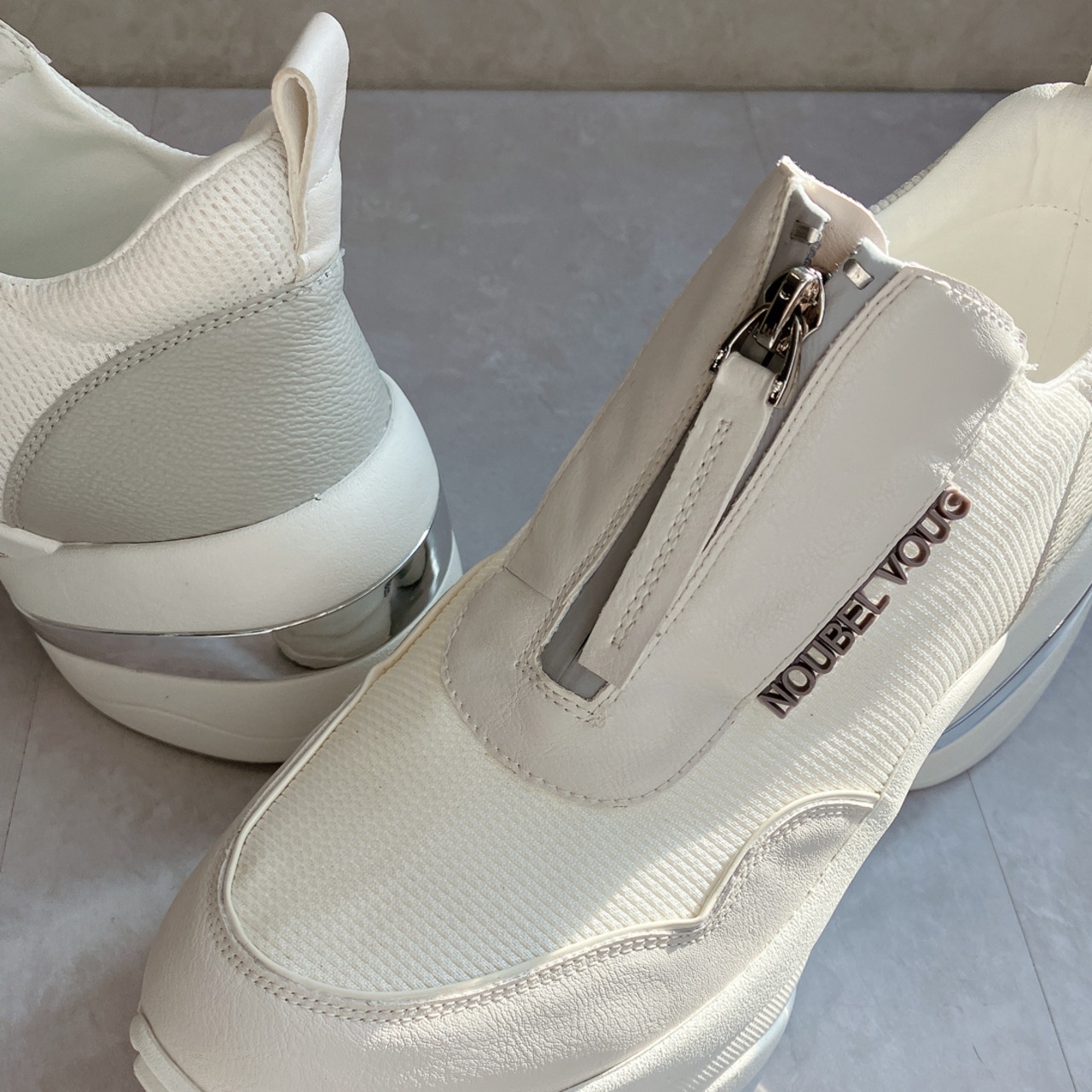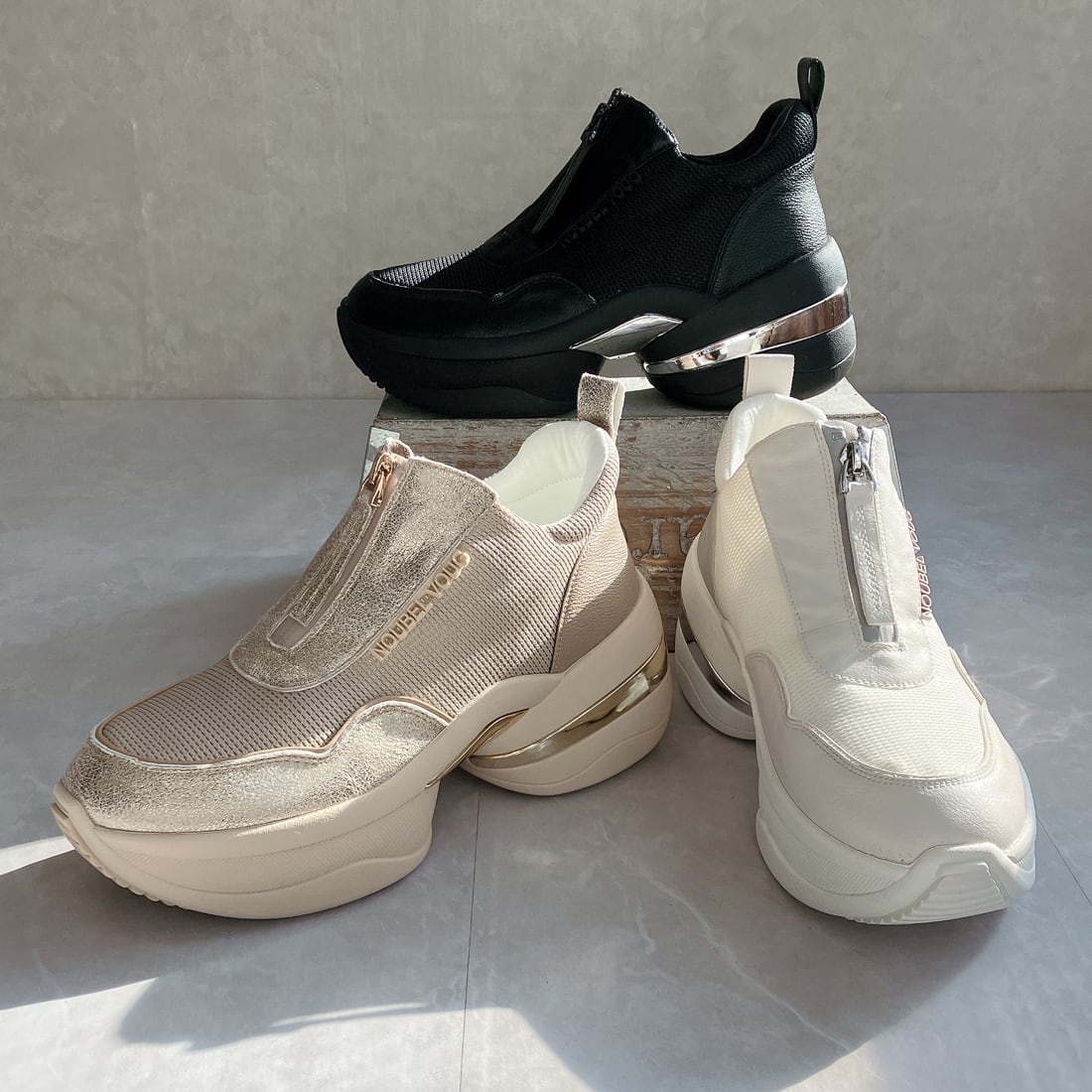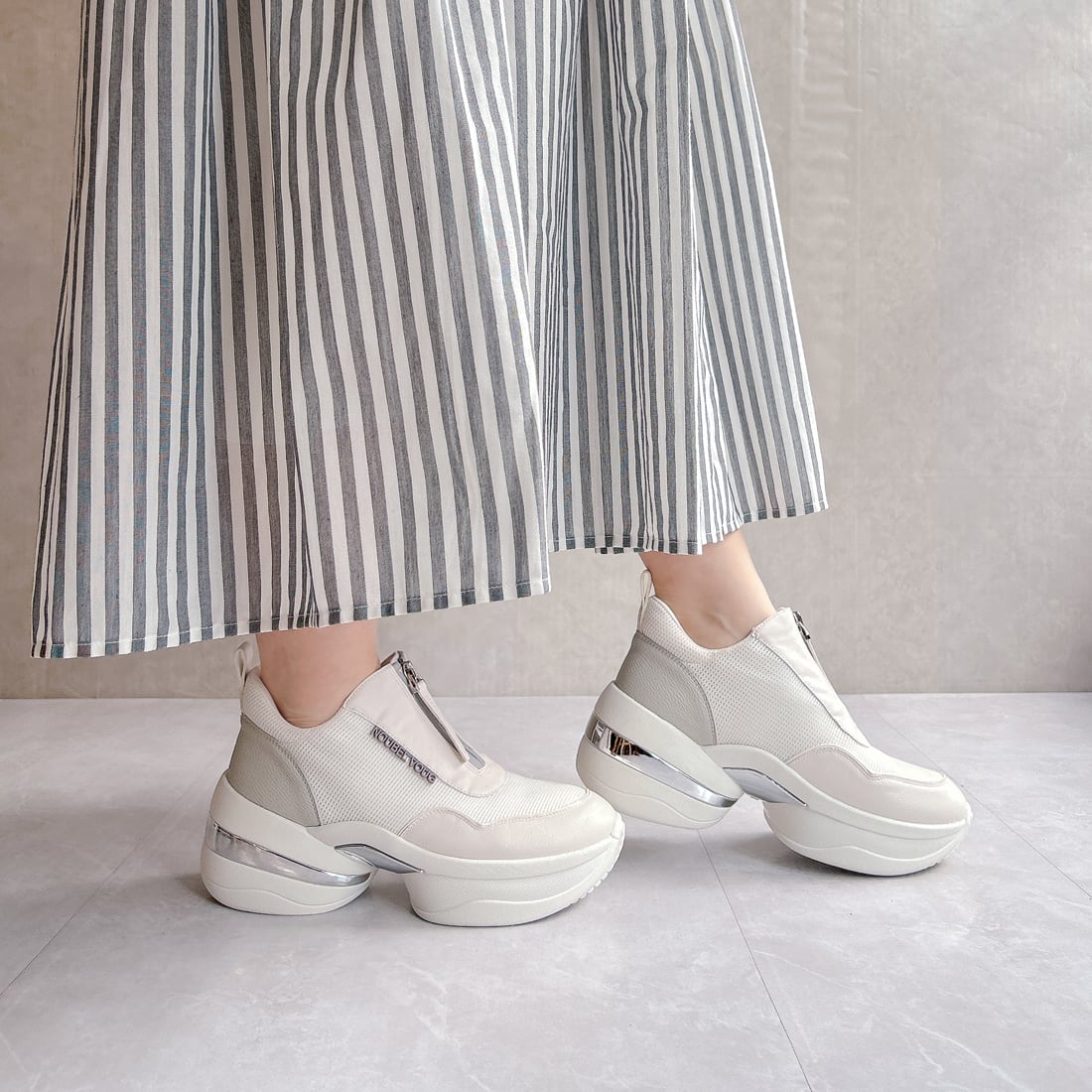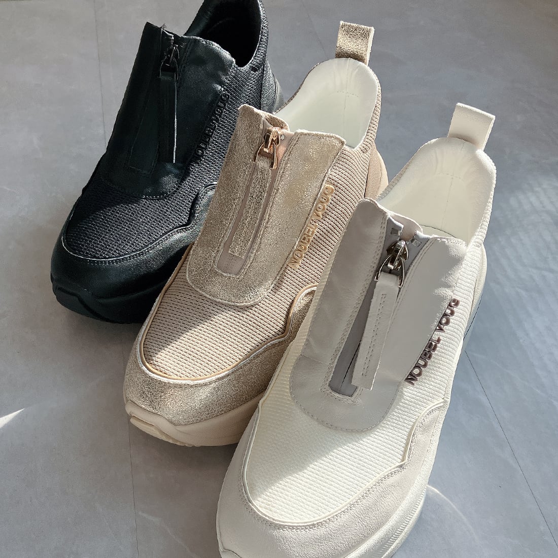 上品スニーカー サッと履ける フロントジッパー厚底スニーカー<217-A3> Noubel Voug Relax