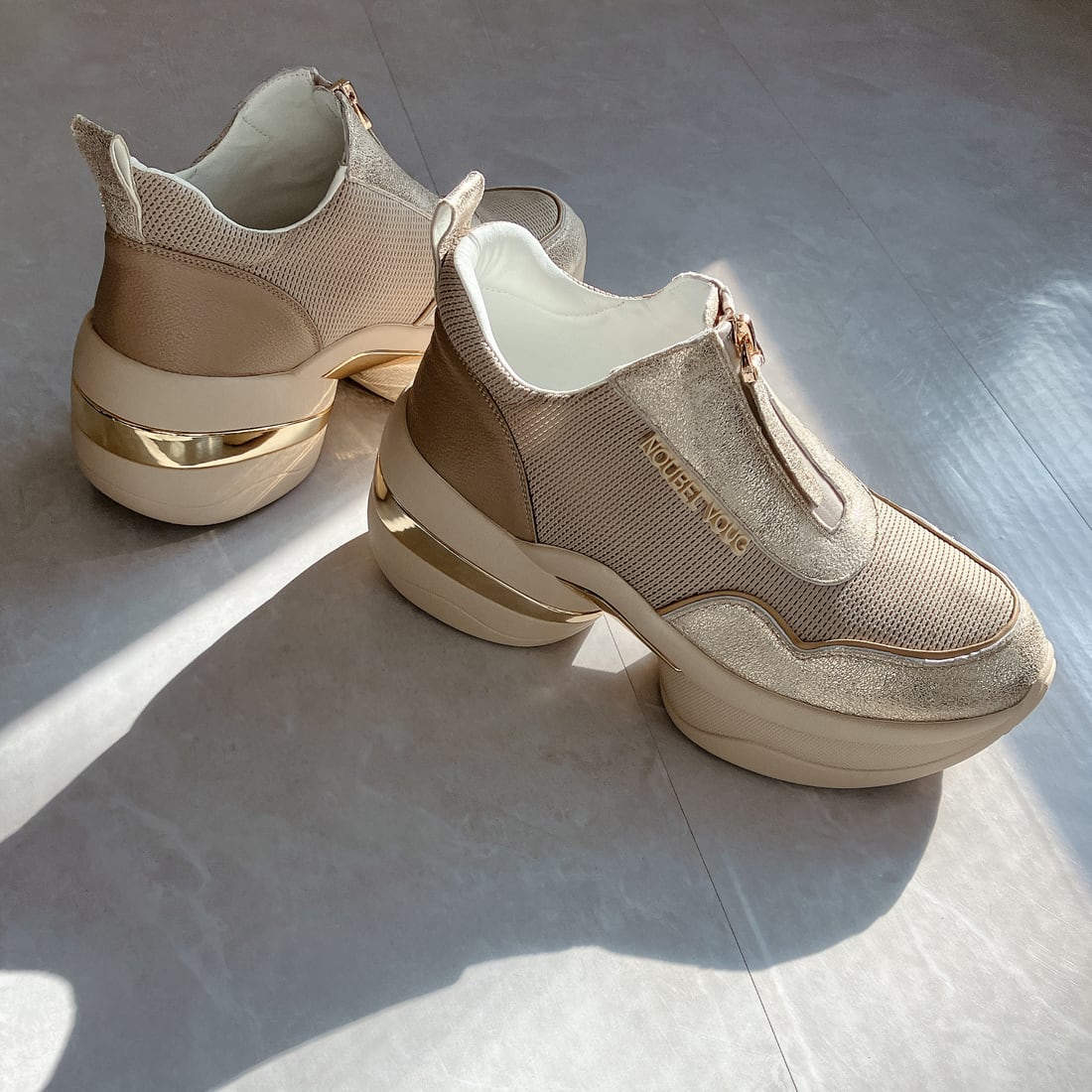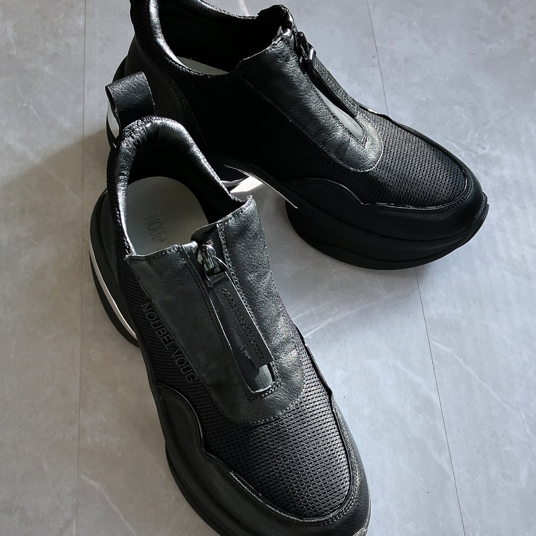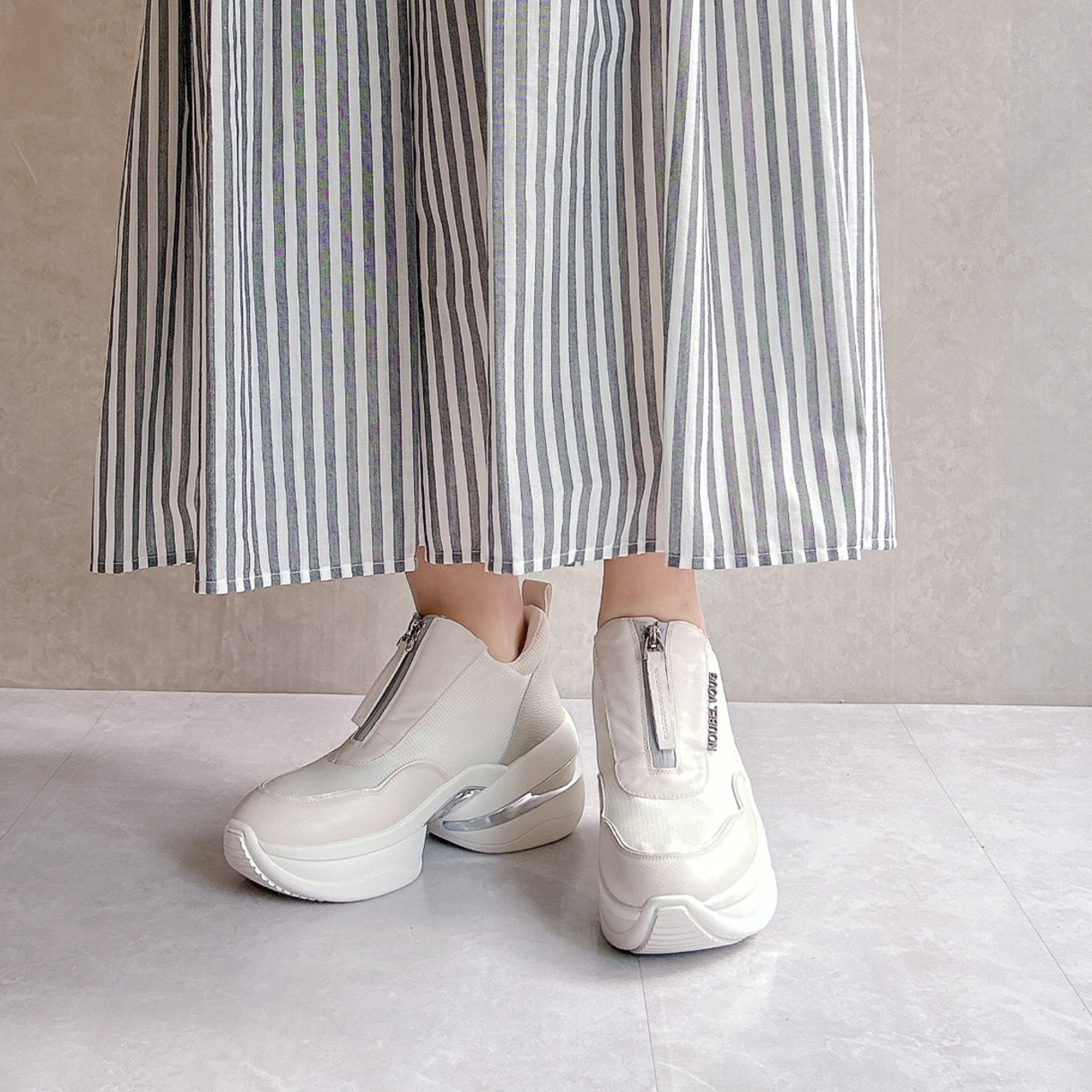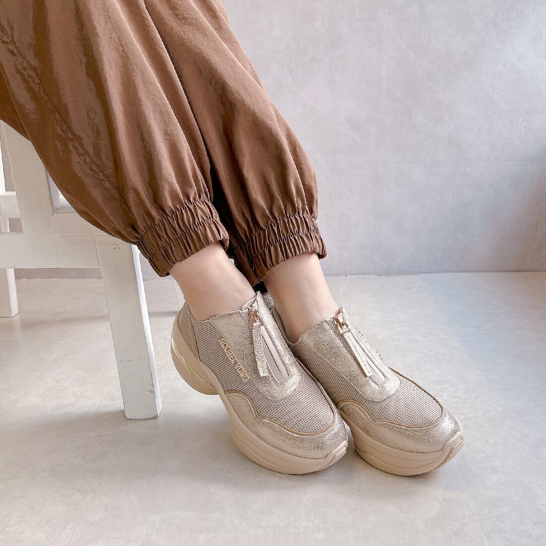 上品スニーカー サッと履ける フロントジッパー厚底スニーカー<217-A3> Noubel Voug Relax
