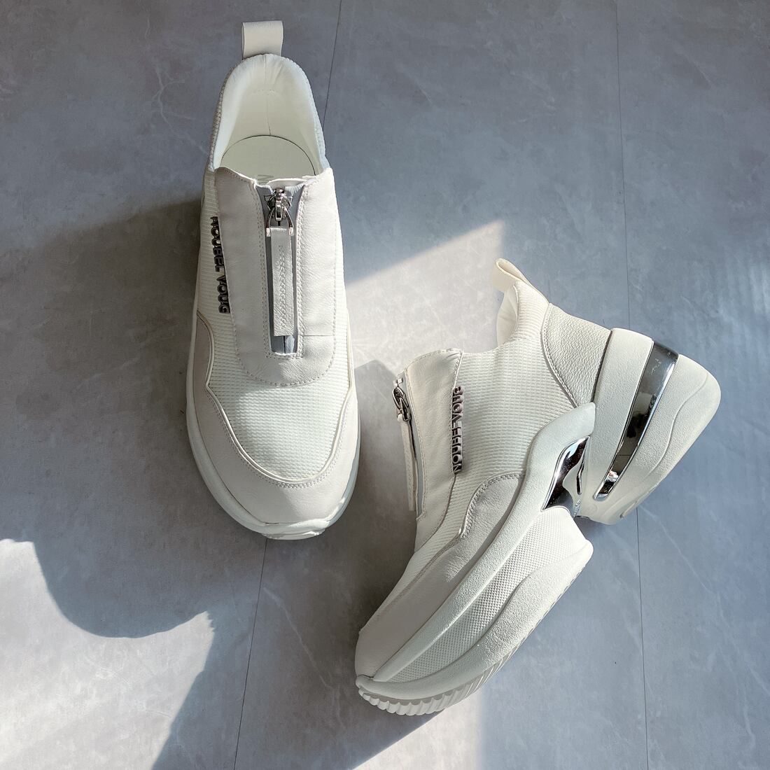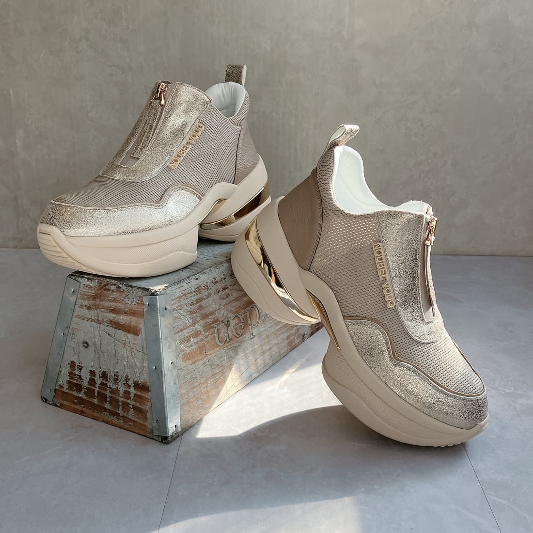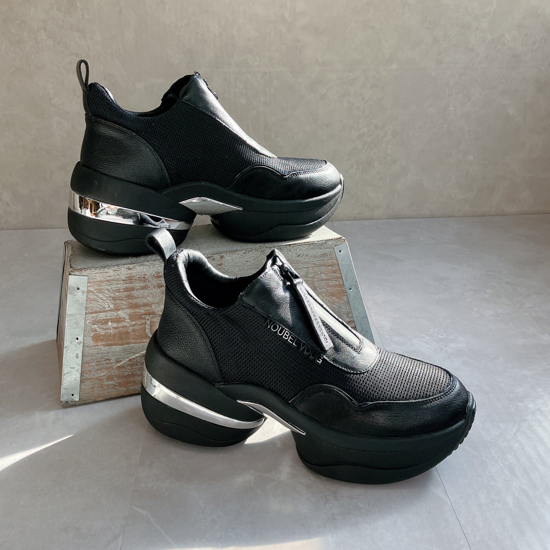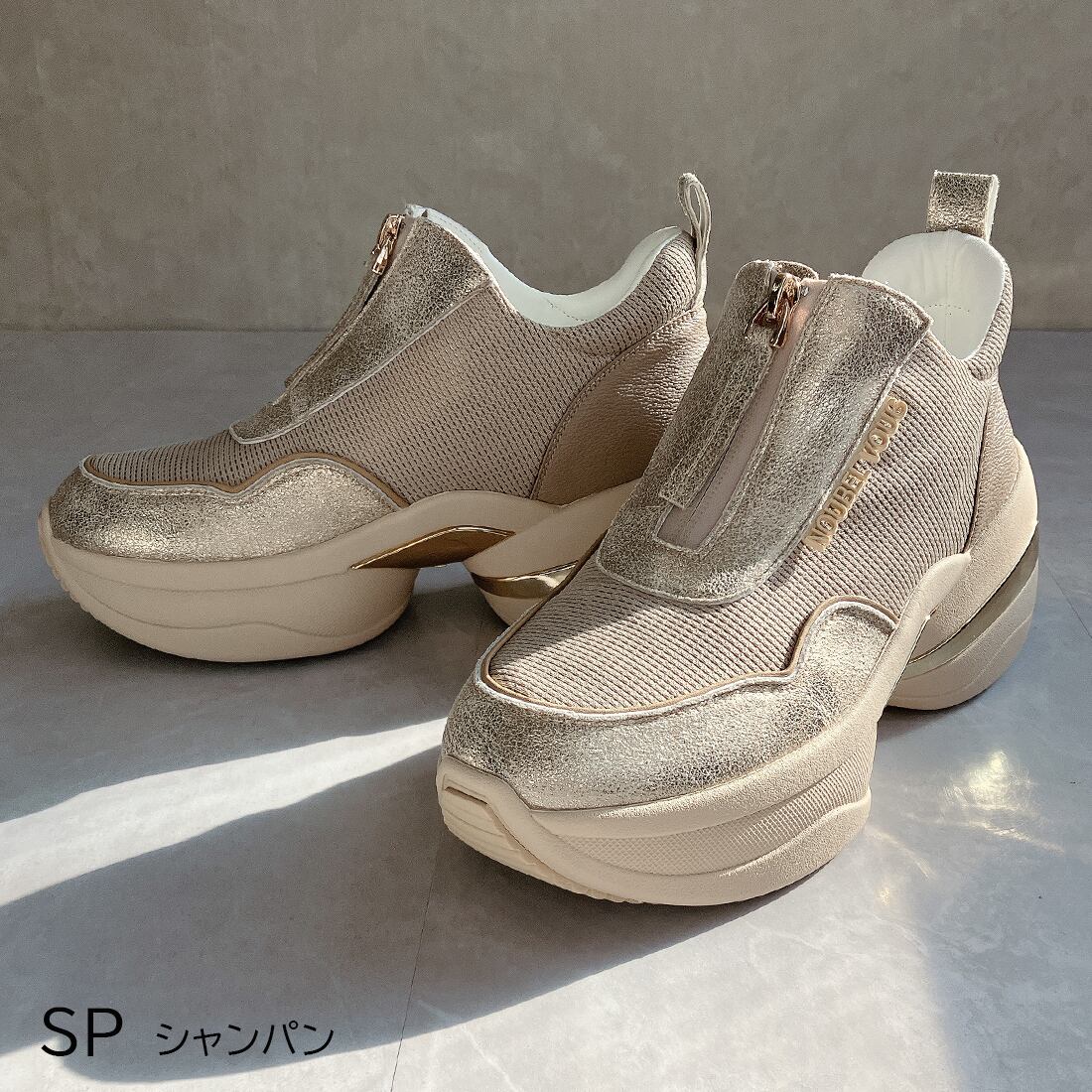 上品スニーカー サッと履ける フロントジッパー厚底スニーカー<217-A3> Noubel Voug Relax