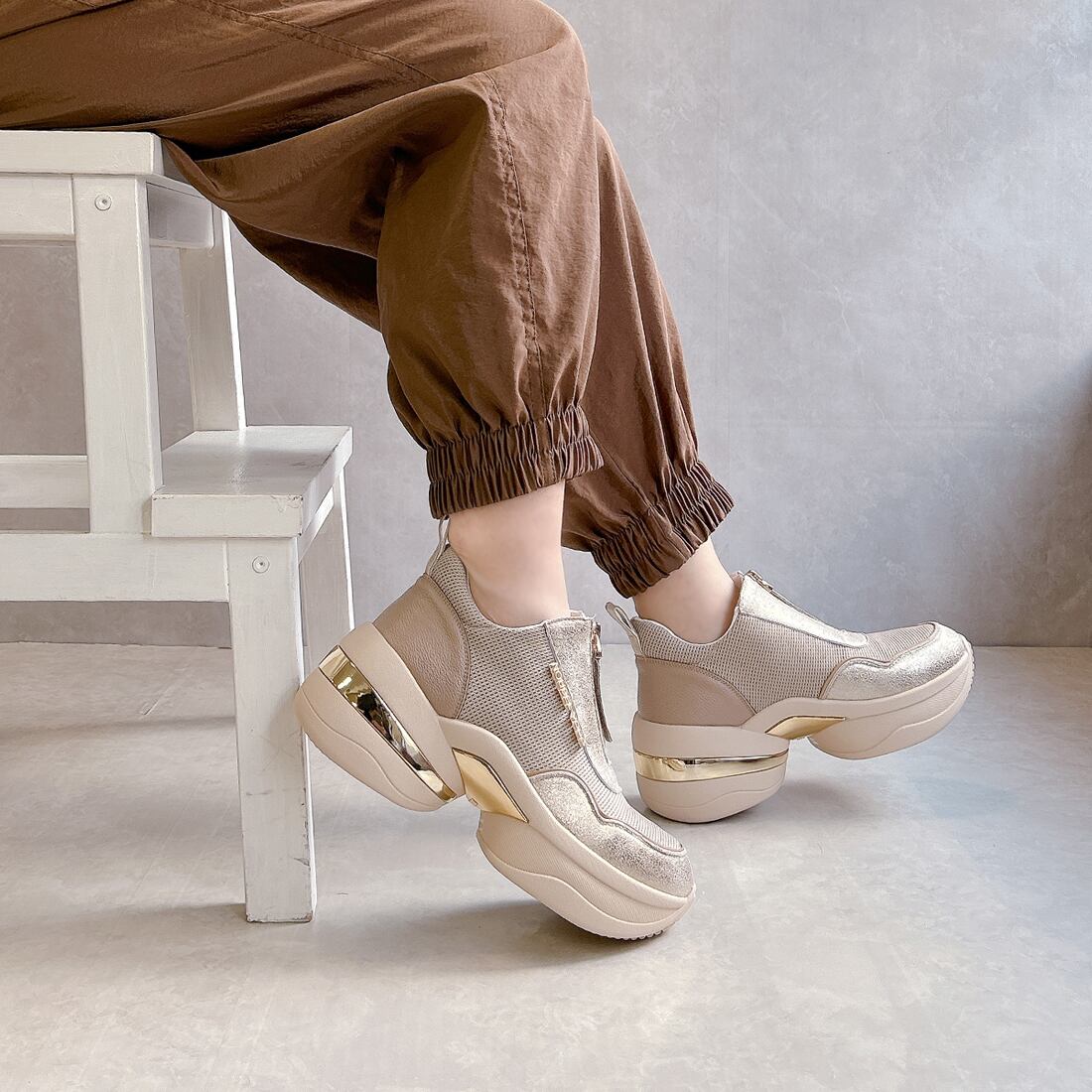 ボリューム感のある厚底ソールは、自然なスタイルアップを叶えつつ、安定感のある履き心地を実現。