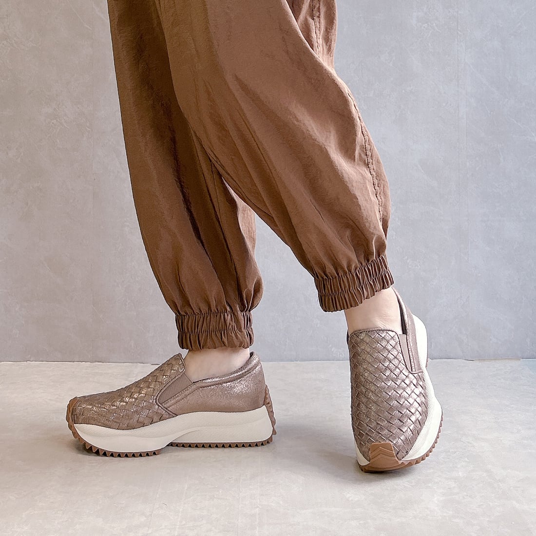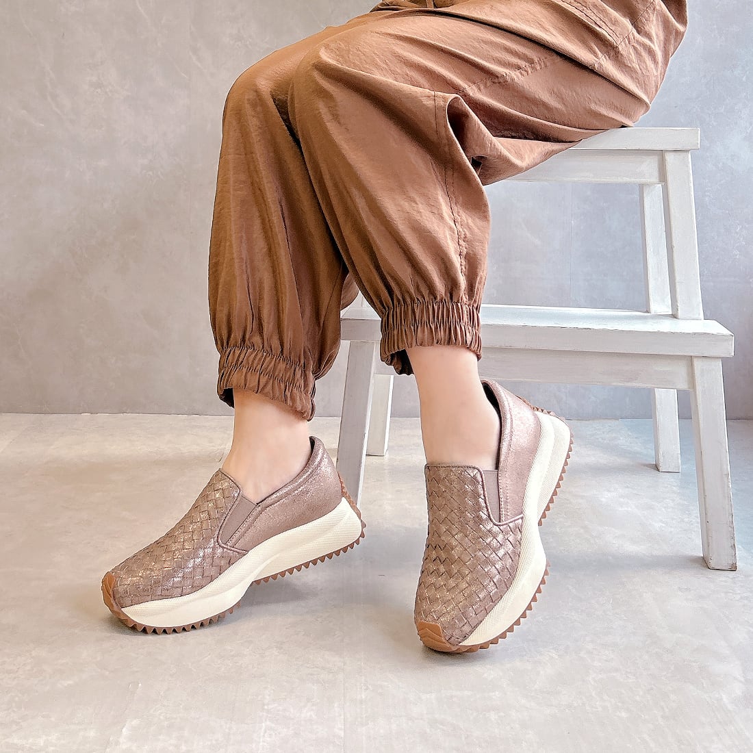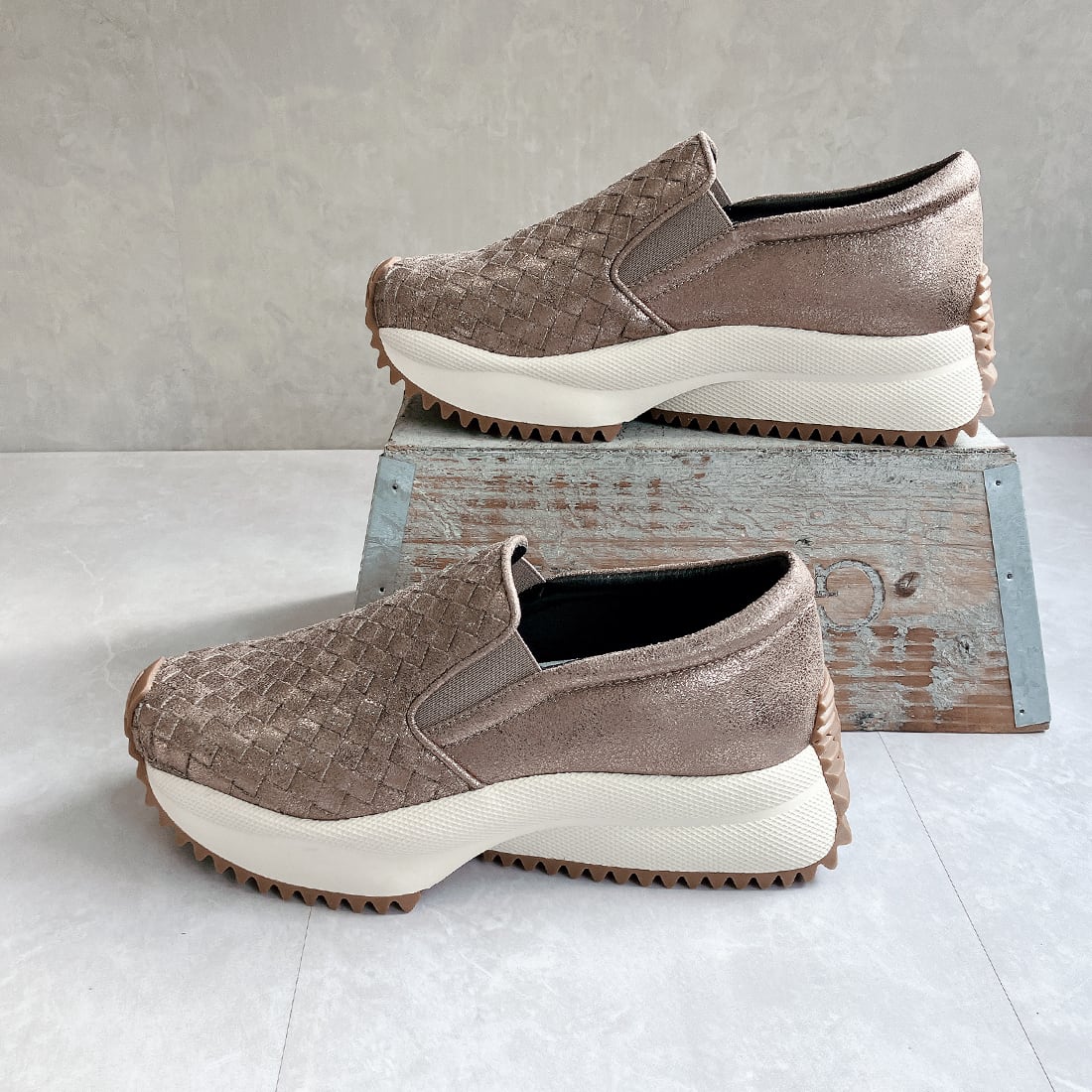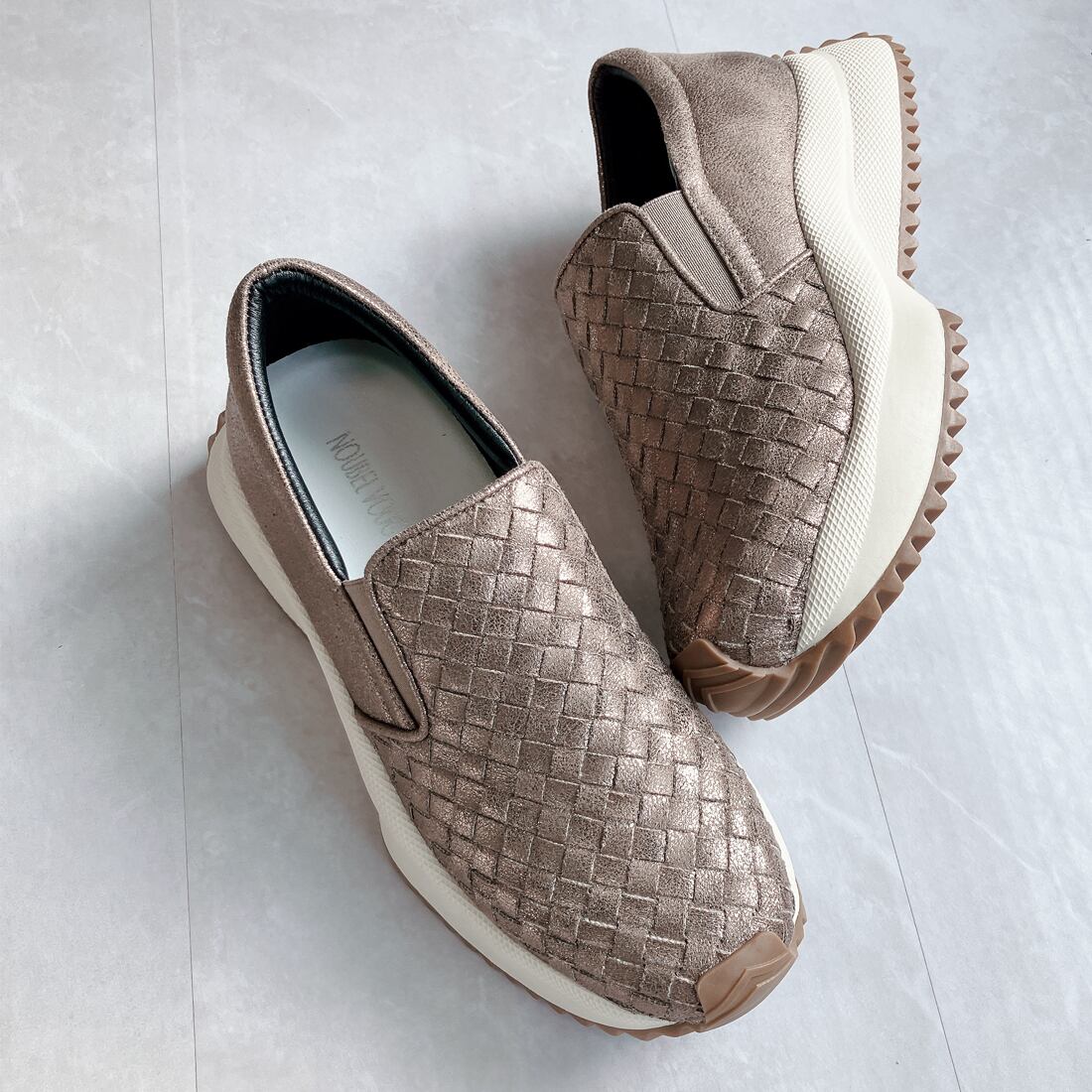 上品スニーカー 厚底 編み込みデザイン サイドゴア スリッポンスニーカー <217-9108> Noubel Voug Relax