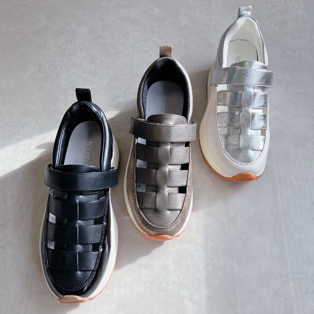 上品スニーカー グルカデザイン厚底 異素材コンビスニーカ〈217-7211〉Noubel Voug Relax