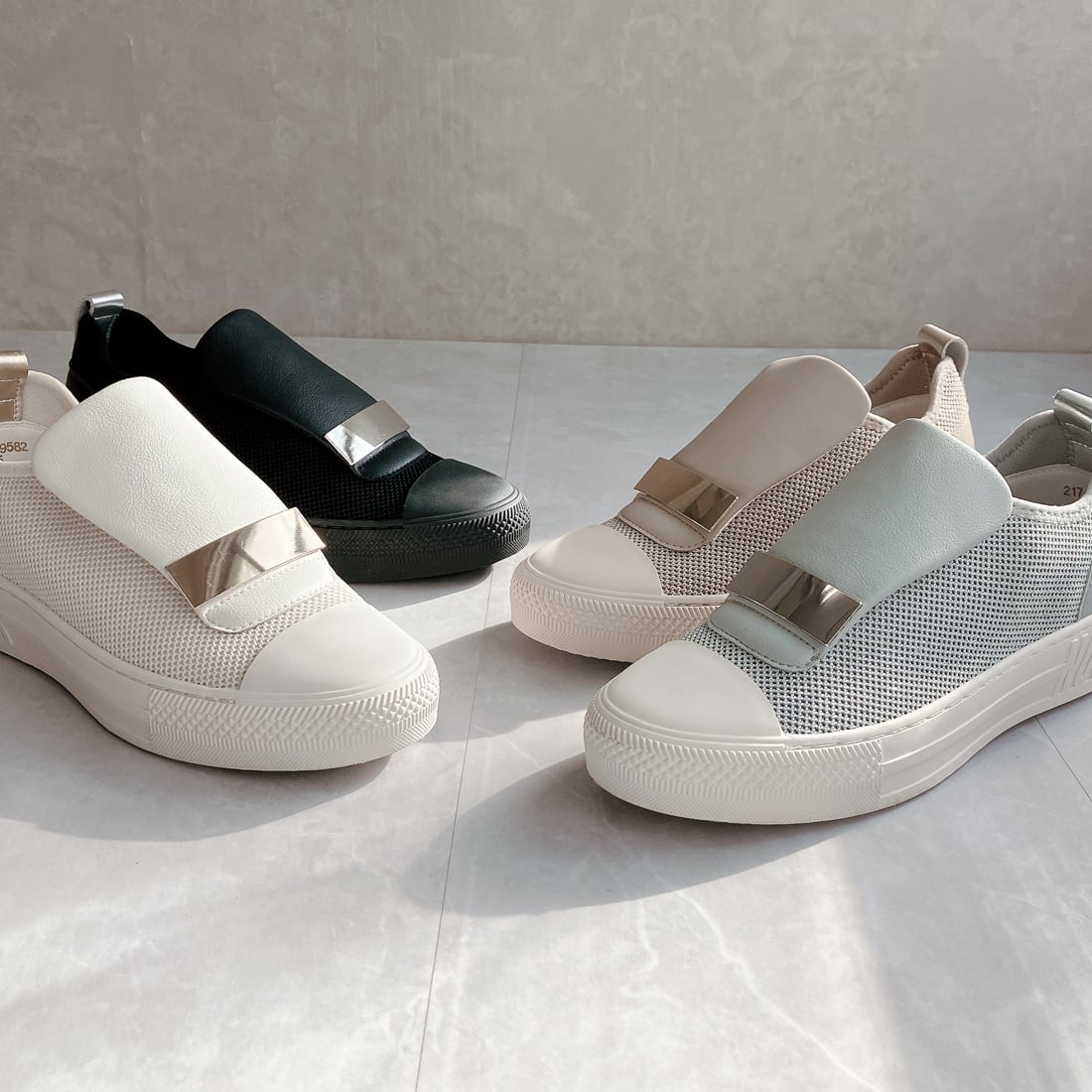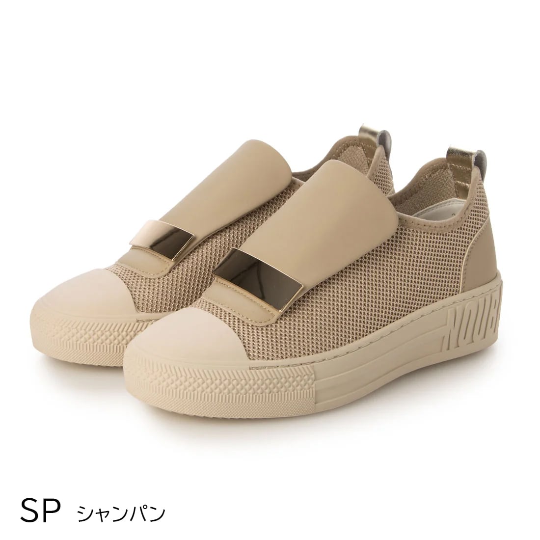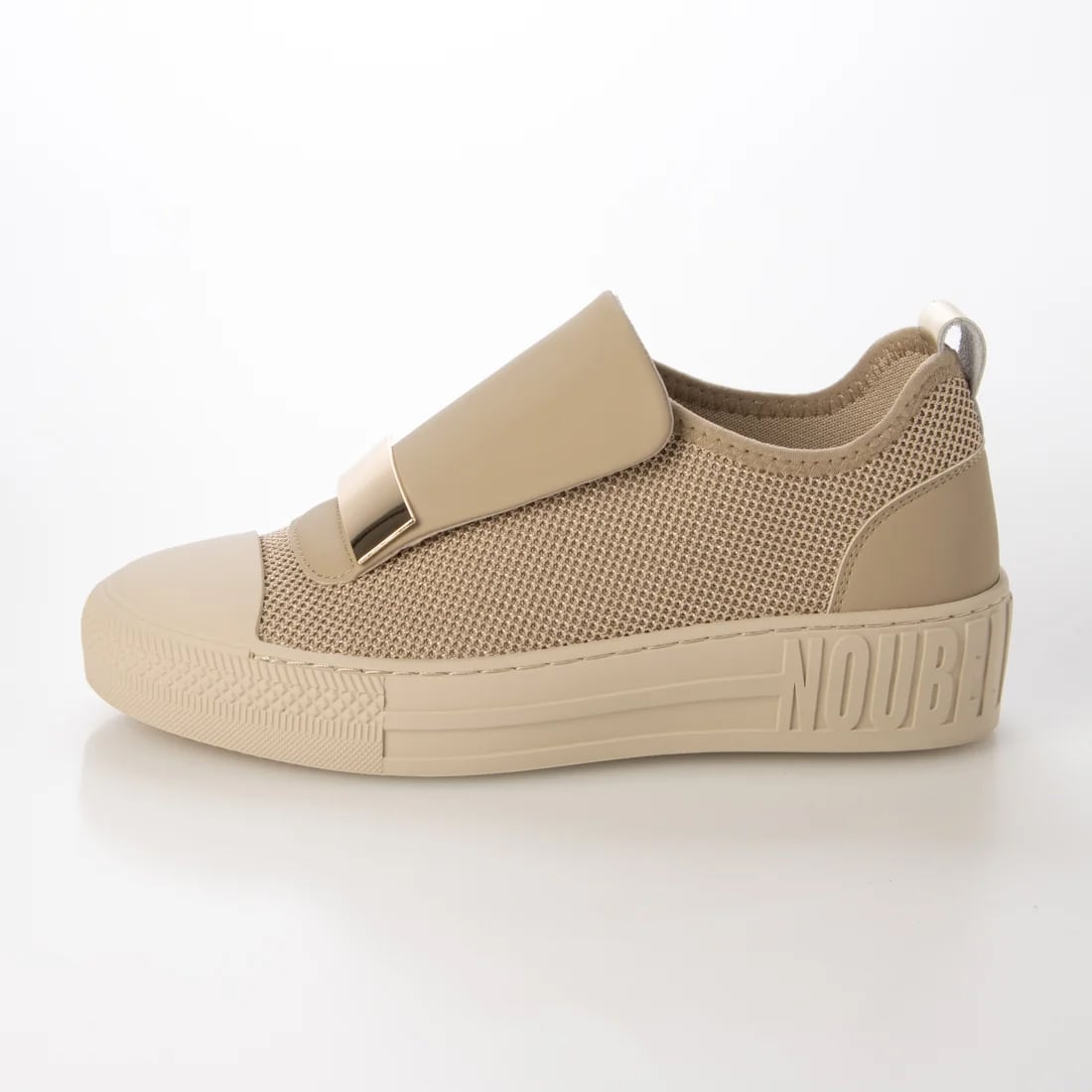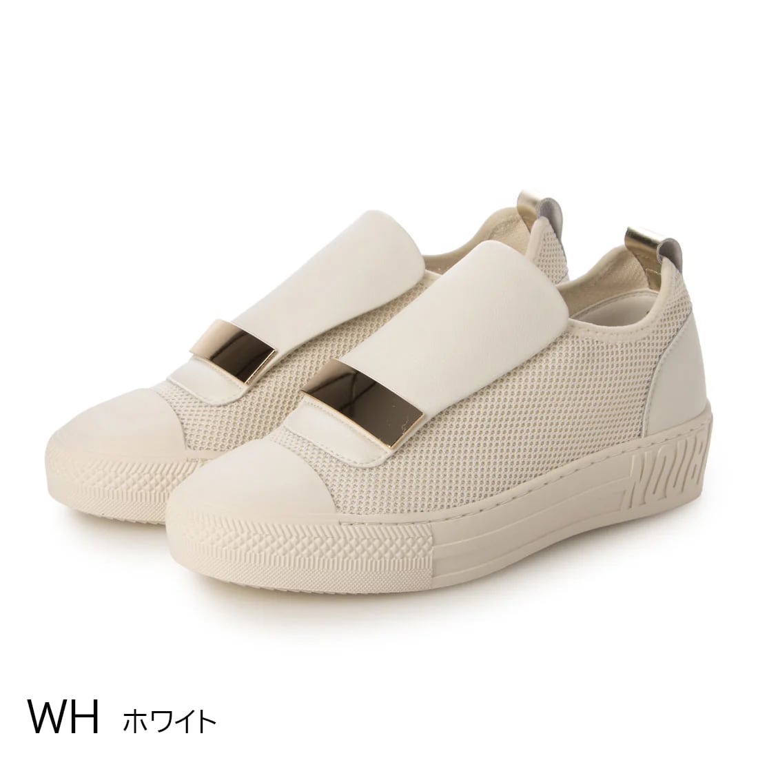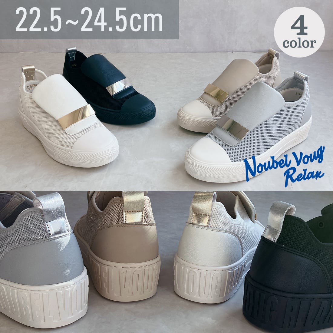 上品スニーカー サッと履ける レザーメッシュメタルデザインスニーカー<217-19582> Noubel Voug Relax