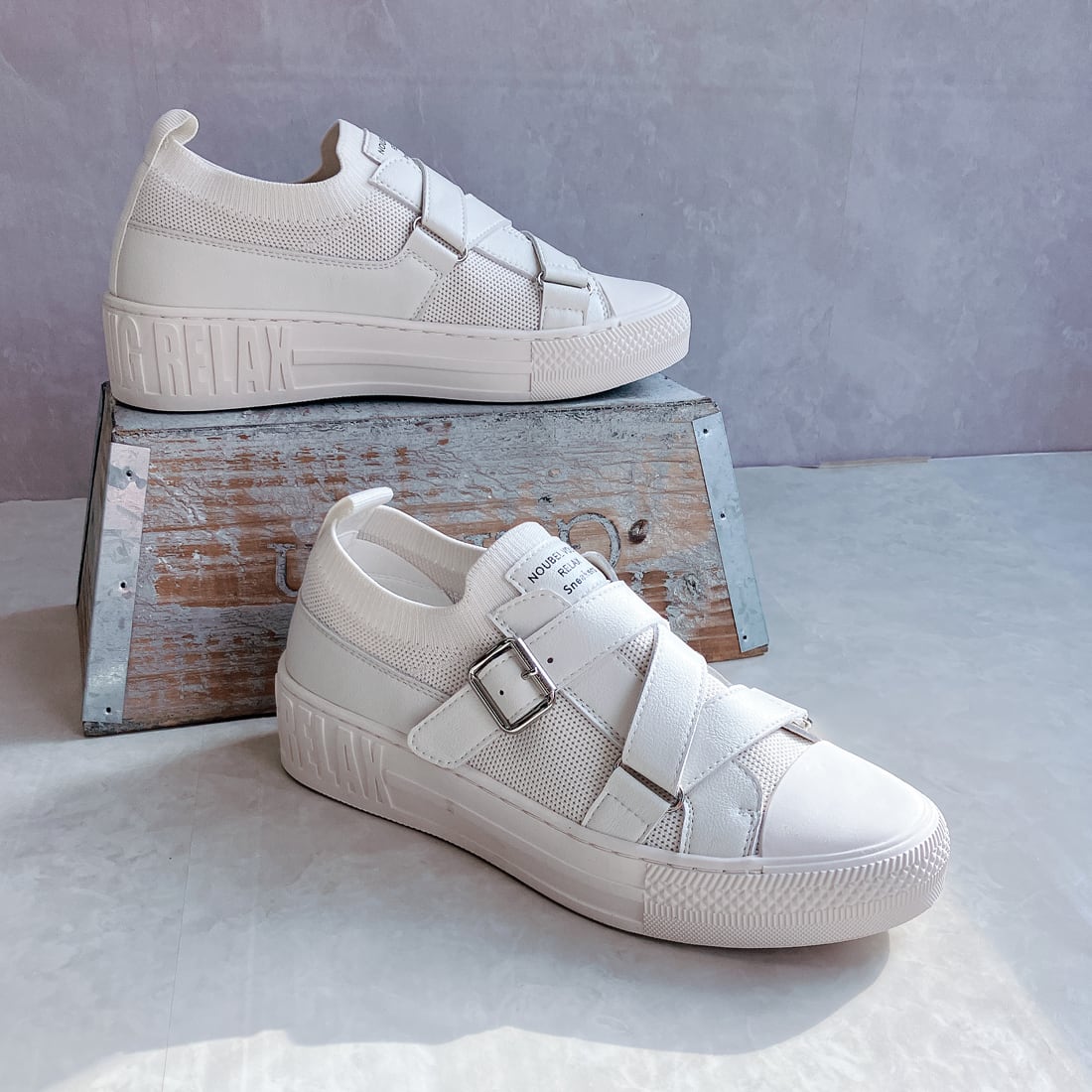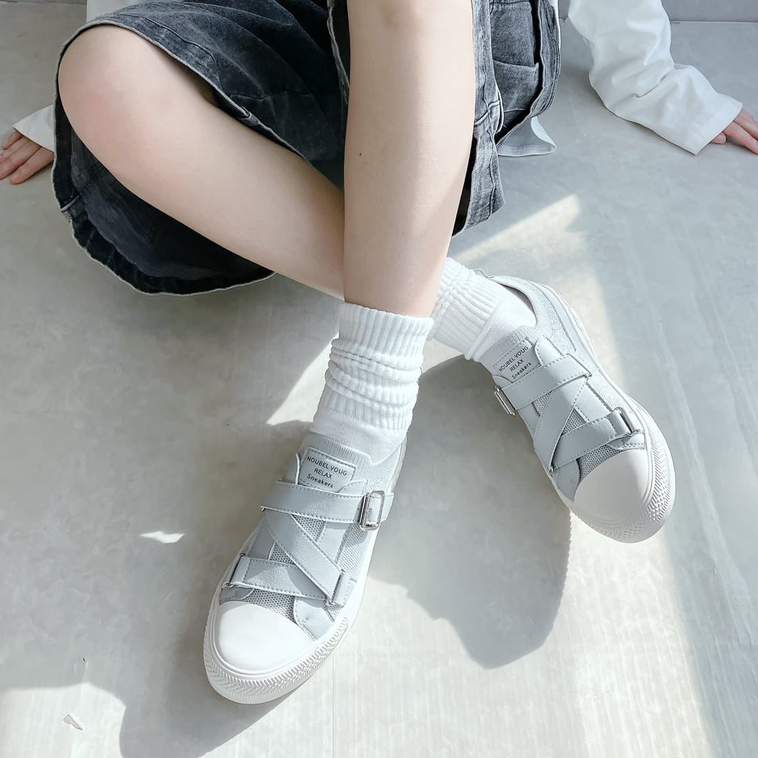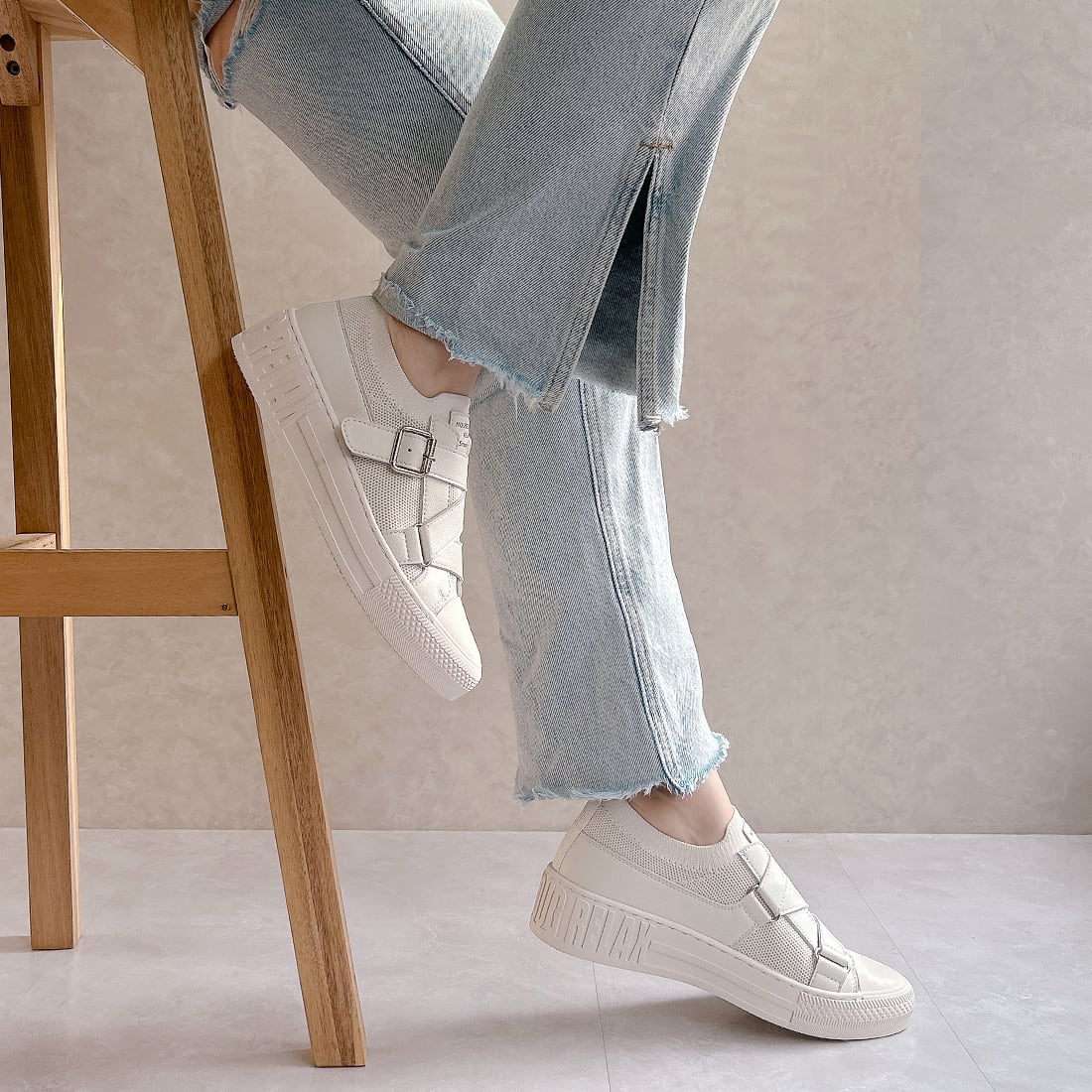 デザイン性と履きやすさをスマートに融合した、大人カジュアルのためのレザーベルトスニーカー。