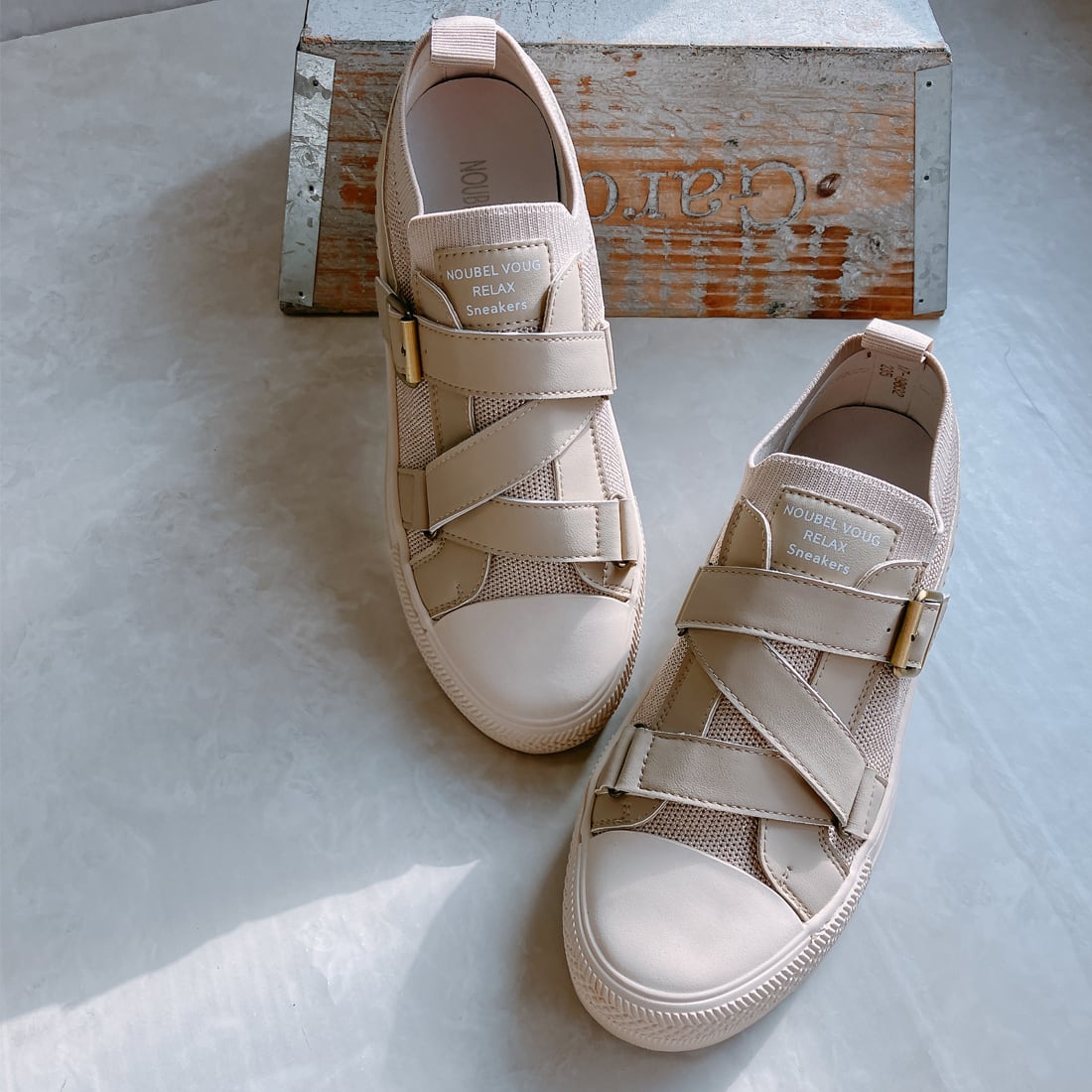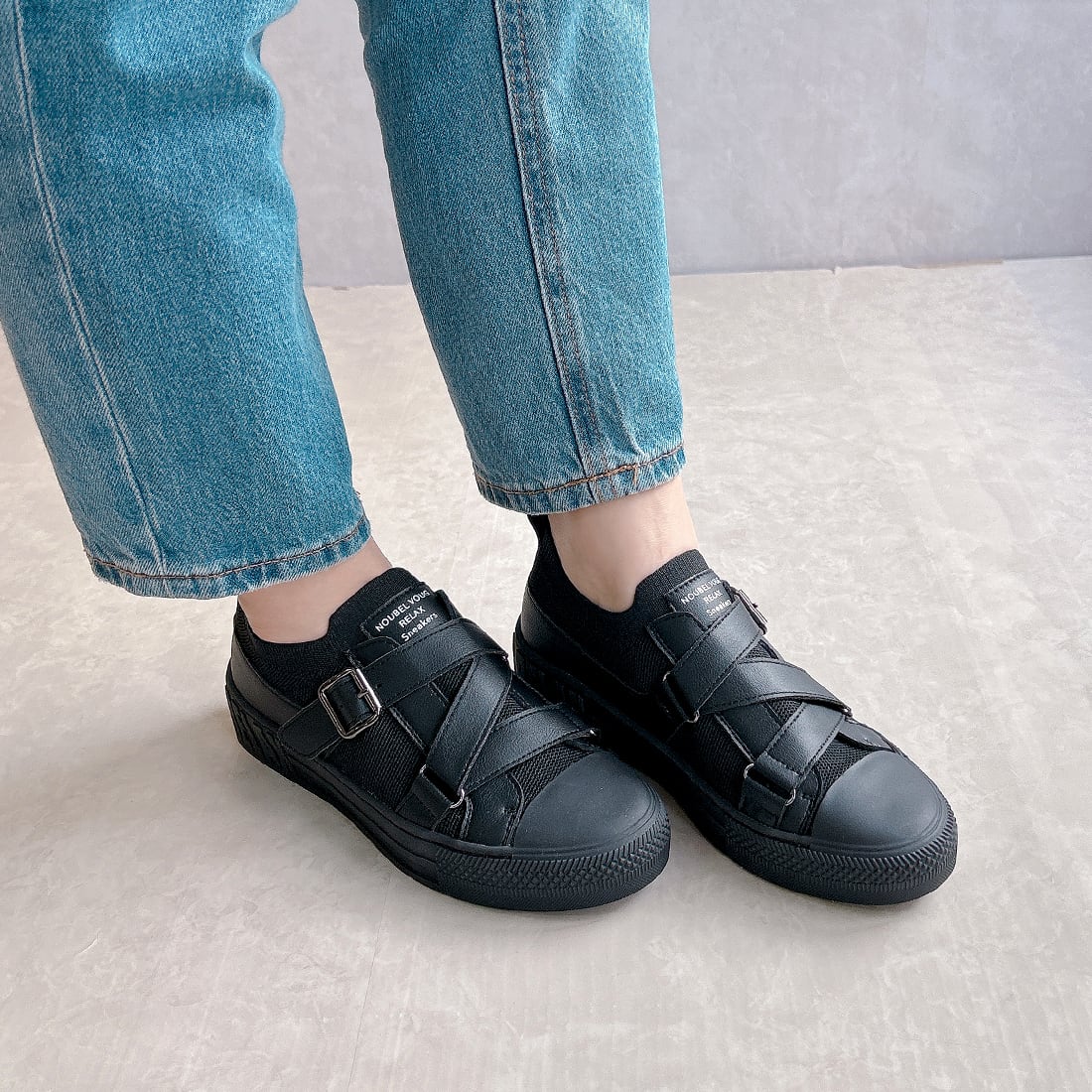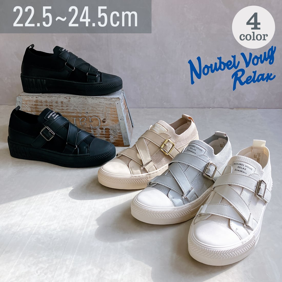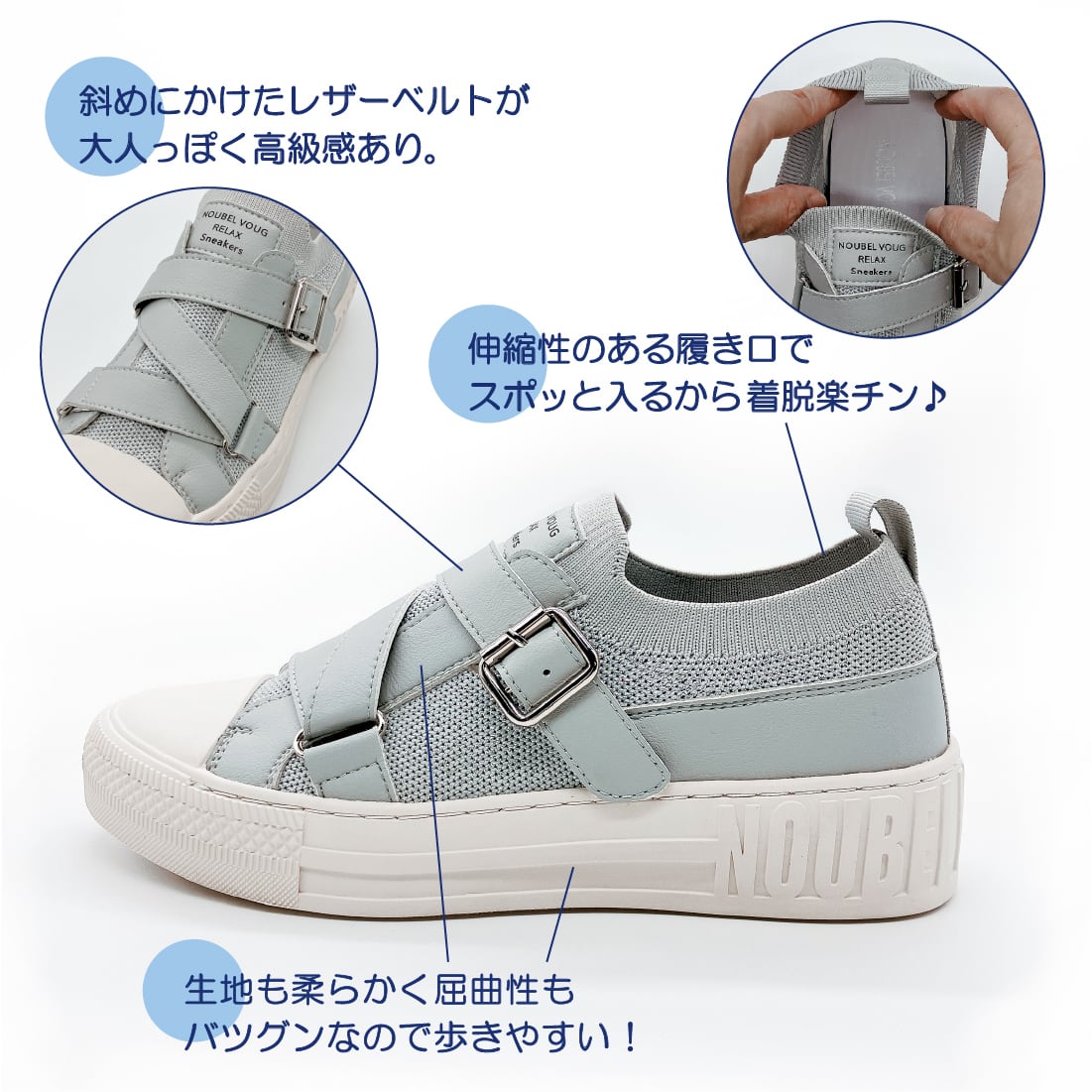 上品スニーカー サッと履ける レザークロスベルトデザインスニーカー <217-19832> Noubel Voug Relax