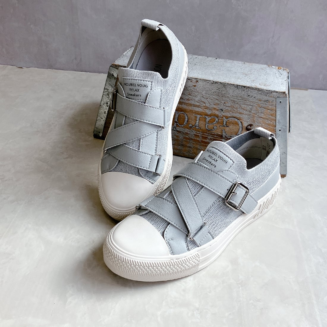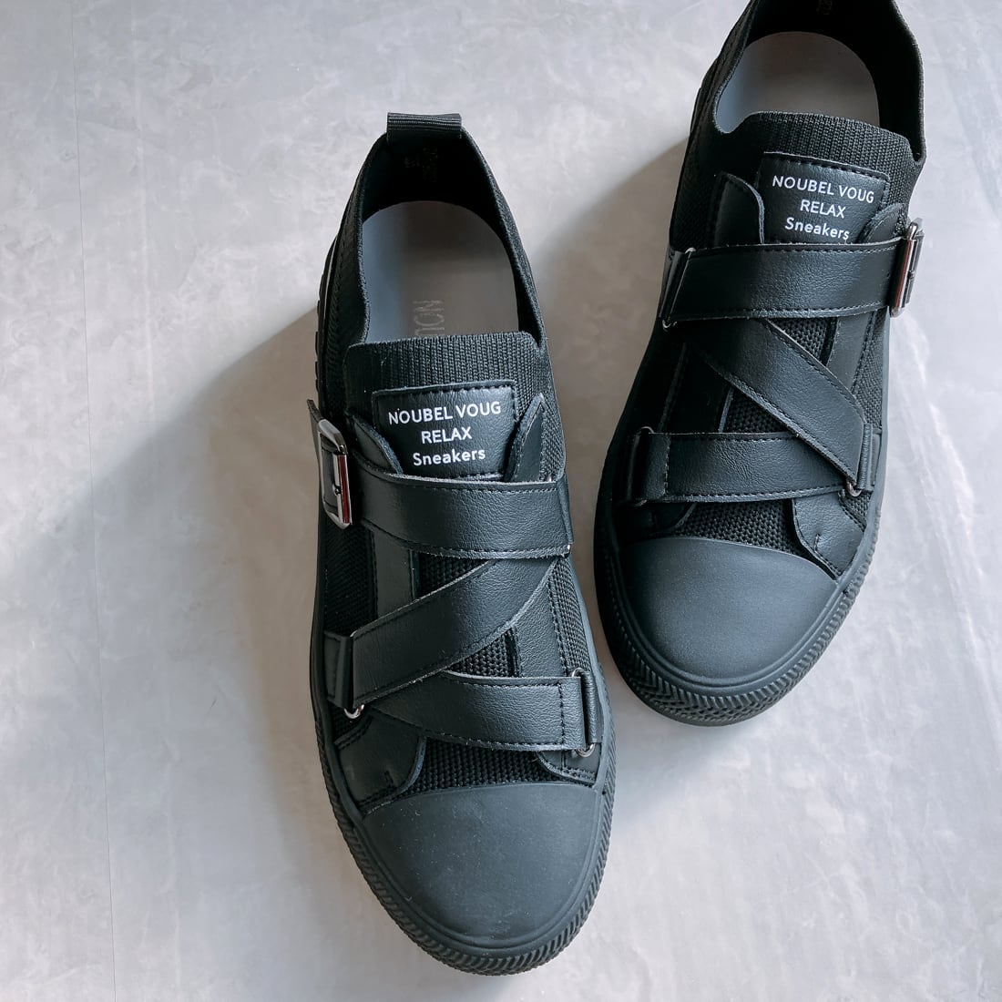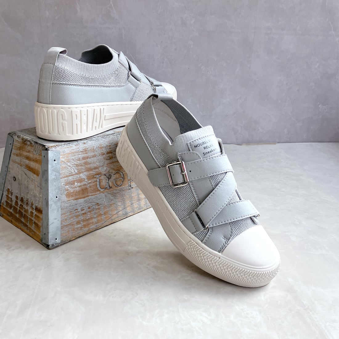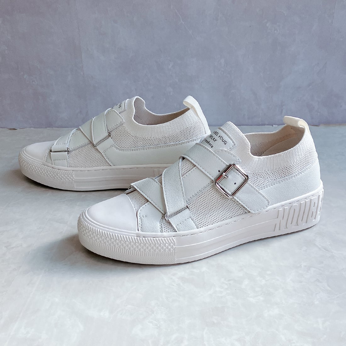 上品スニーカー サッと履ける レザークロスベルトデザインスニーカー <217-19832> Noubel Voug Relax