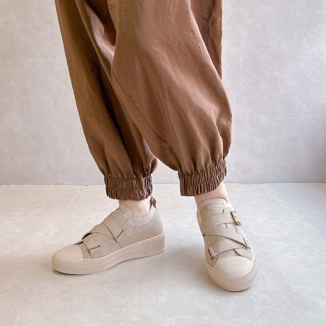 スニーカーの軽快さに、きちんと感をプラスし、カジュアルになりすぎない洗練された足元を演出します。