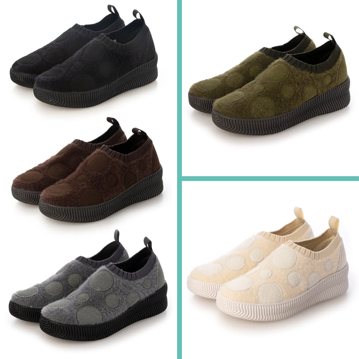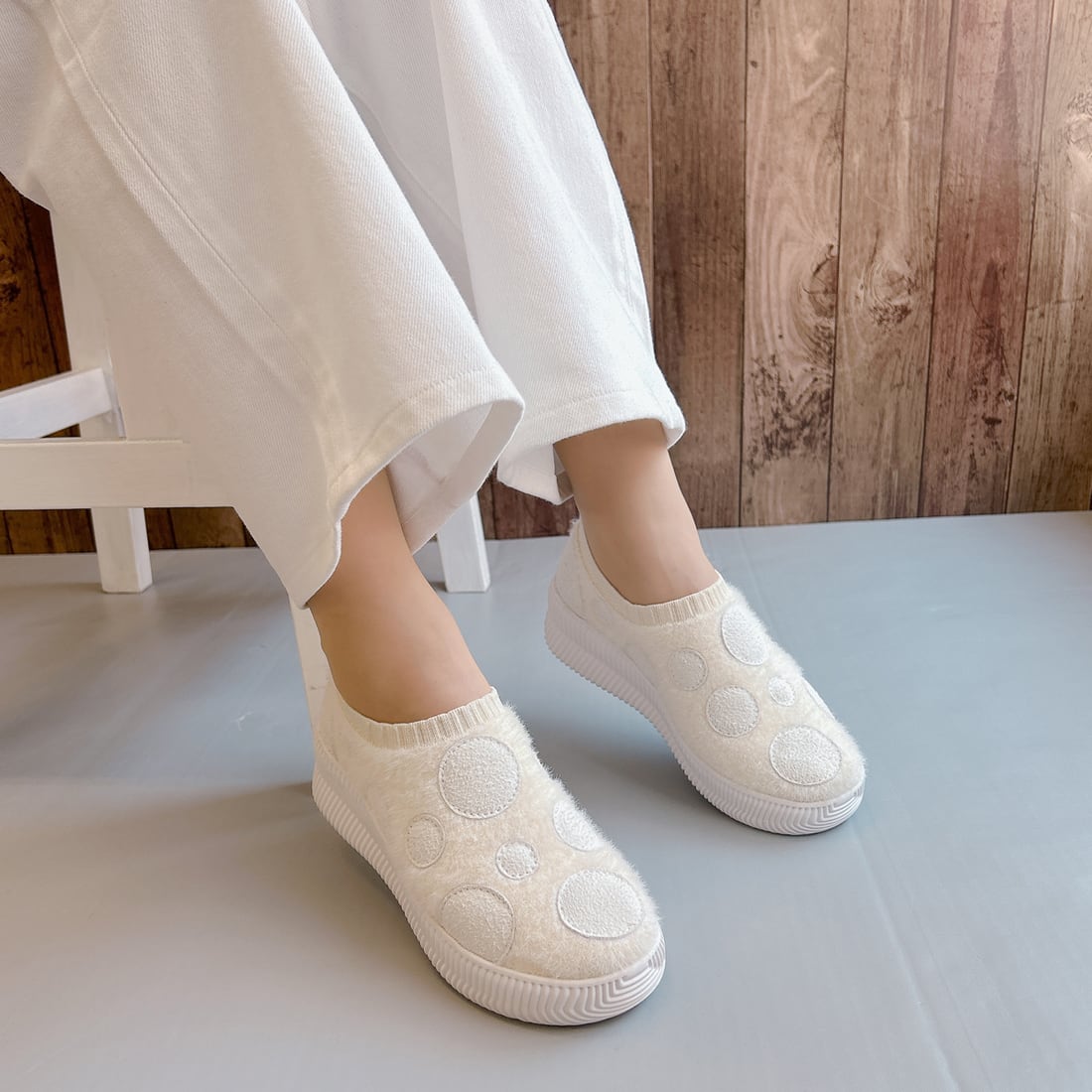 ドット柄 厚底 軽量 あたたか ニットスニーカー〈99-8024〉【洗えて清潔】Gomu56