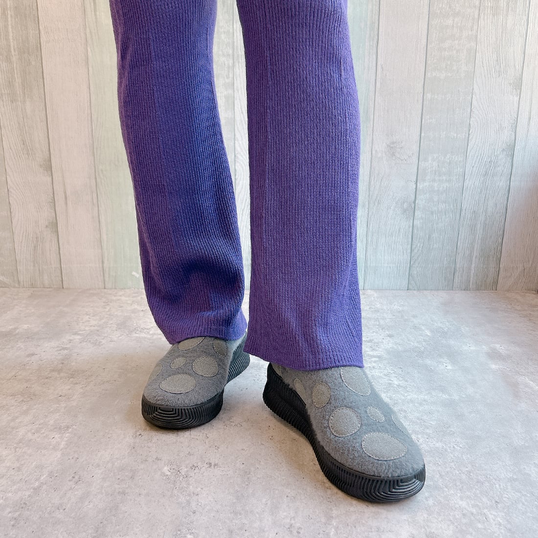 上質な温かいニットは、伸縮性抜群で様々な足の形に素材がフィット。