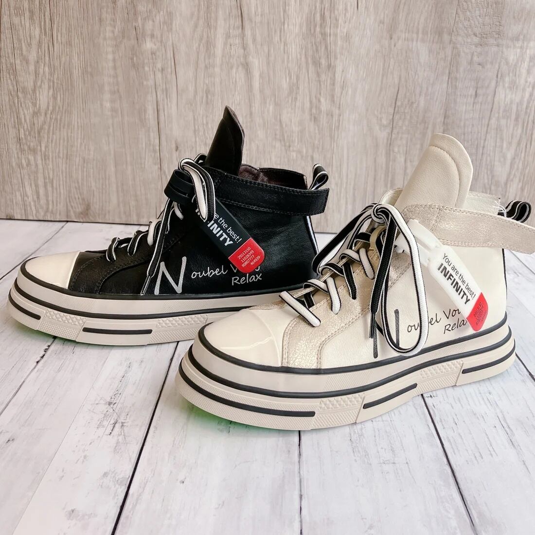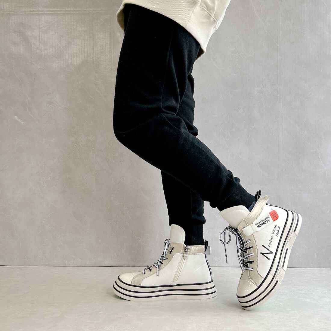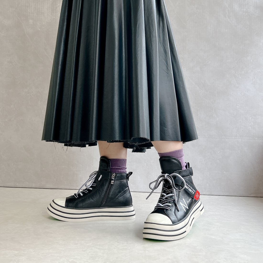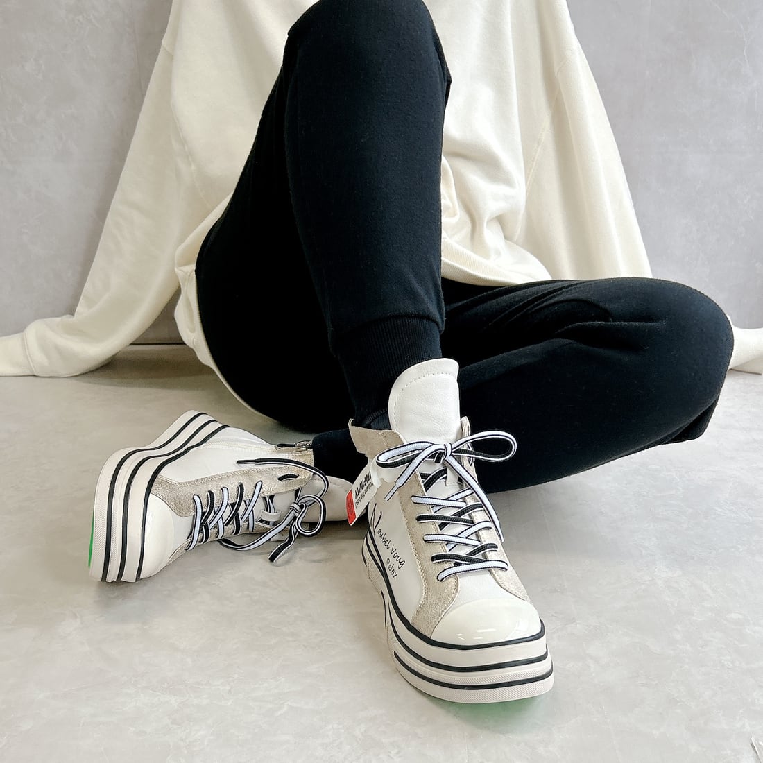 厚底 ジップアップ ラベル ハイカットスニーカー〈217-PUS5253〉Noubel Voug Relax