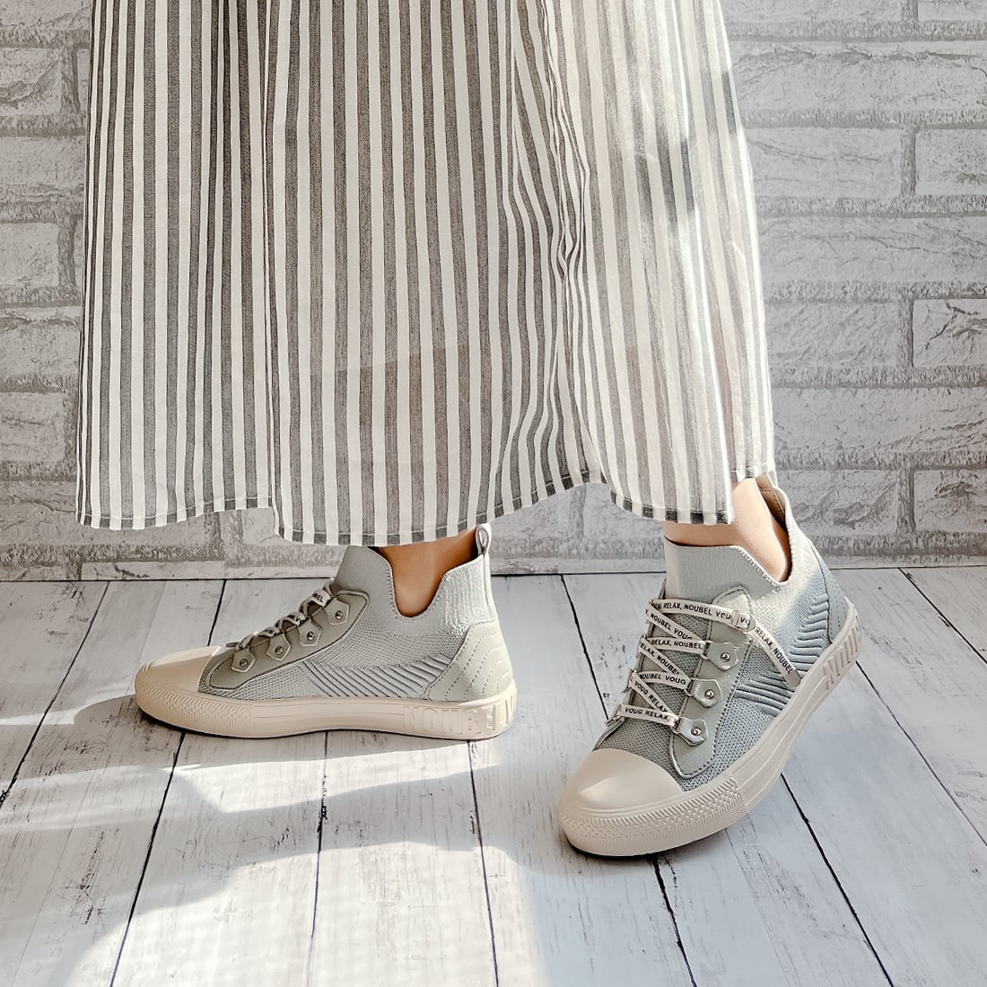 ストレスフリーに履ける柔らかニット素材のハイカットスニーカー。
