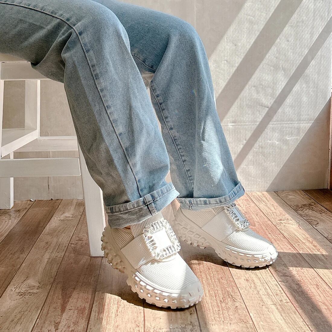 軽量ボリュームソールビジューバックルスニーカー 〈217-2269〉Noubel Voug Relax