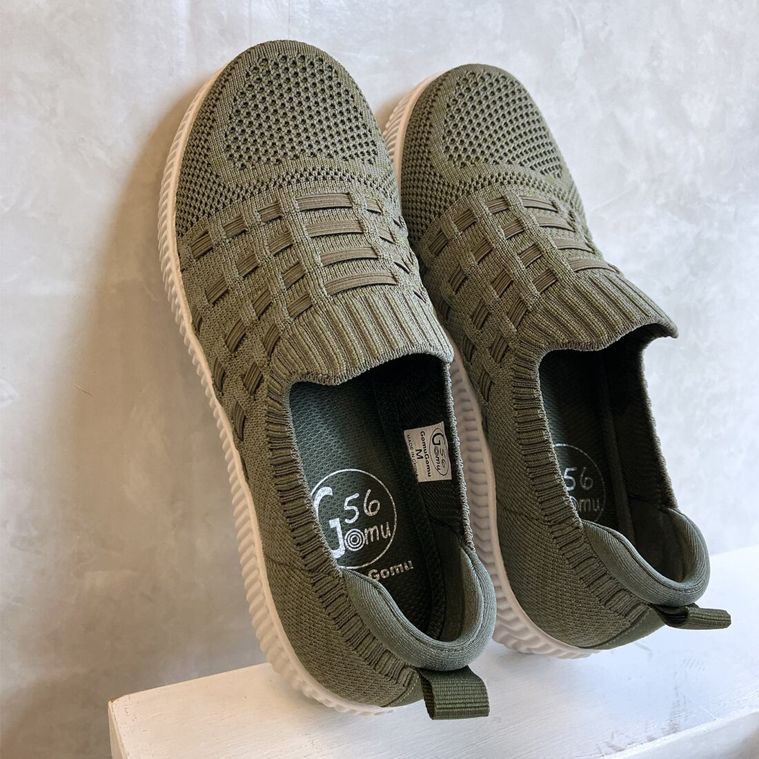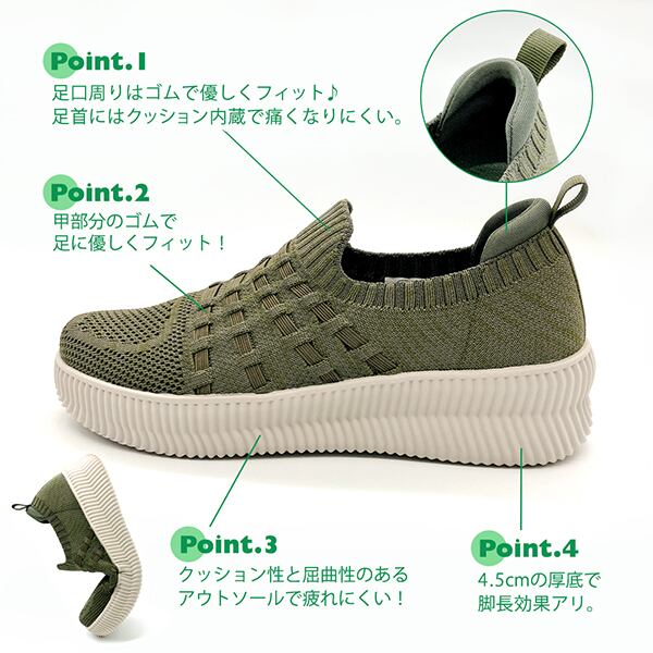 軽量 厚底ニット スリッポンスニーカー ゴムゴム〈99-8061〉【洗えて清潔】Gomu56