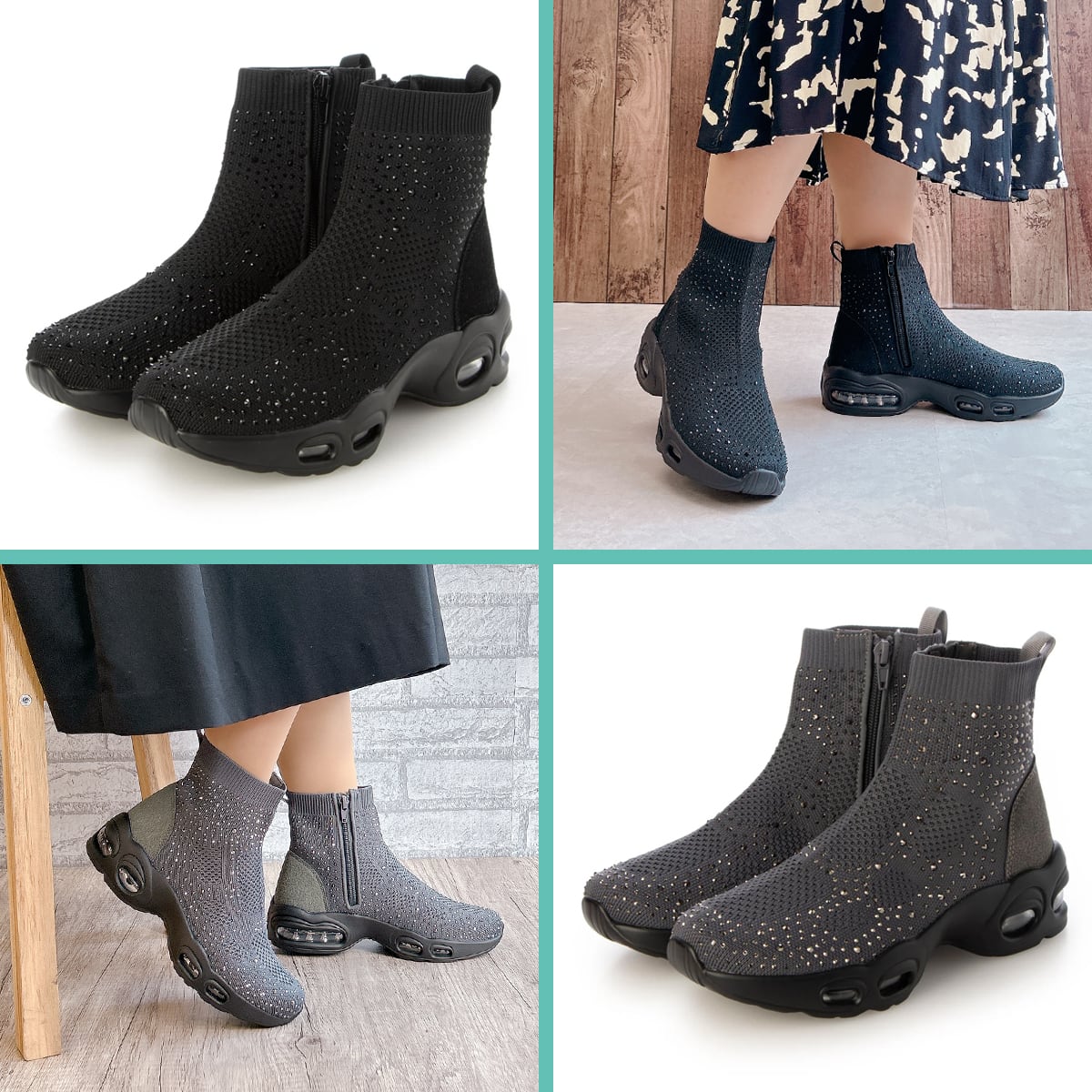 エア入りソール キラキラニット ショートブーツ ゴムゴム〈99-5567〉Gomu56