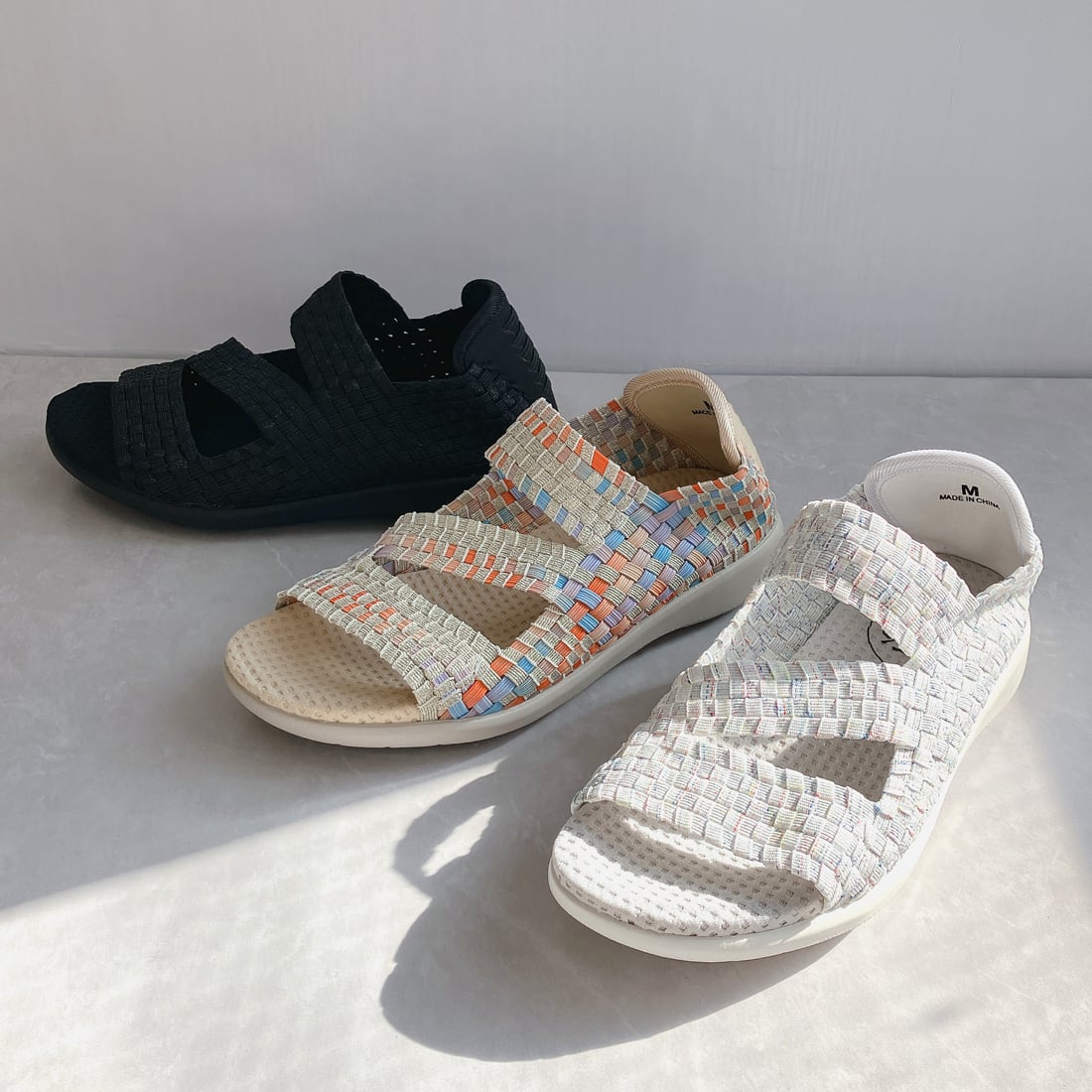 「サンダル感覚で履けるスニーカー」をイメージしてホールド感や抜け感、足を美しく見せるデザインにこだわりました。