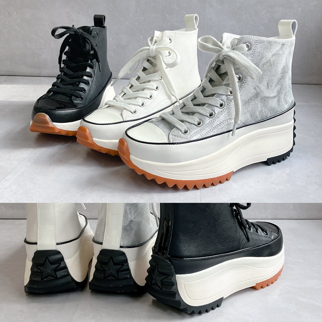 厚底 サイドファスナー ハイカット レースアップスニーカー<217-7268> ヌーベル ヴォーグ リュクスライン