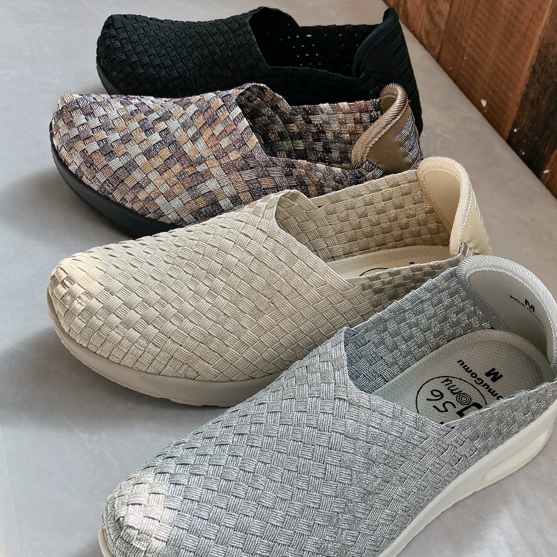 ◇当商品はアッパーを1足ずつハンドメイドで編んでいる為、左右で個体差が生じる場合がございます。予めご了承ください。